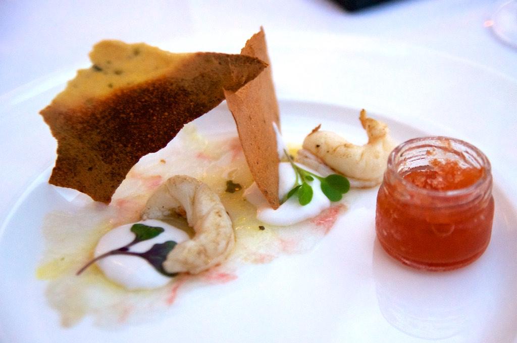 After inspection of the menu card whilst zipping on a glass of Croatian bubbles we decided to go for the 7 cause tasting menu; Adriatic langoustines with a bloody mary granite, fois grass terrine with a truffle brioche, langoustine consommé, risotto with frog legs and truffle, sole filet with truffle, veal with a horseradish foam and to finish it off a lemongrass pannacotta, tangerine sorbet and orange cake. Of course each dish was accompanied by Croatian wines and by the end of the dinner Paul and I really asked ourselves why Croatian wines are not that well known in Western Europe, they were fabulous! The evening passed by far to quick for our liking.