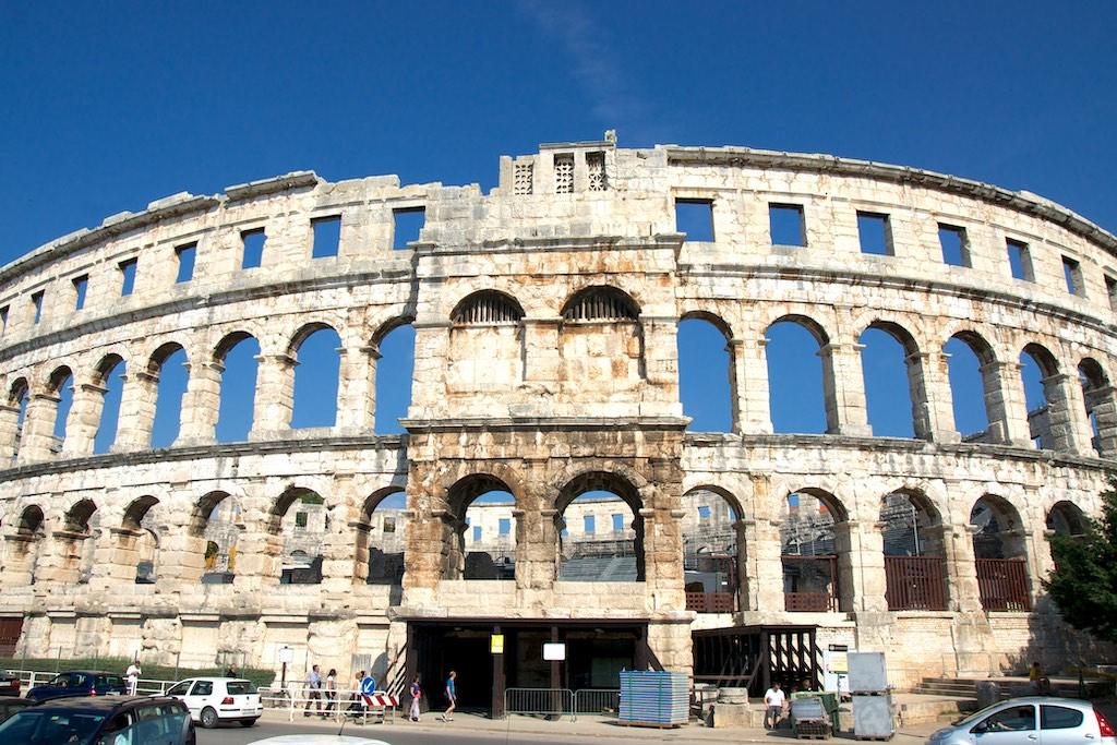 The amphitheatre was built in the 1st century and is world’s 6th largest. In order to save money it was built on a slope so less stones were needed. It was special to visit the dungeons under the arena where prisoners and wild animals were held awaiting their gruesome faith. The gladiators and lions may be long gone but nowadays the arena regularly hots pop concerts and other events, actually whilst our visit everything was prepared to turn the arena into an ice hockey venue, strange to think about with outside temperatures easily hitting 25 degrees.