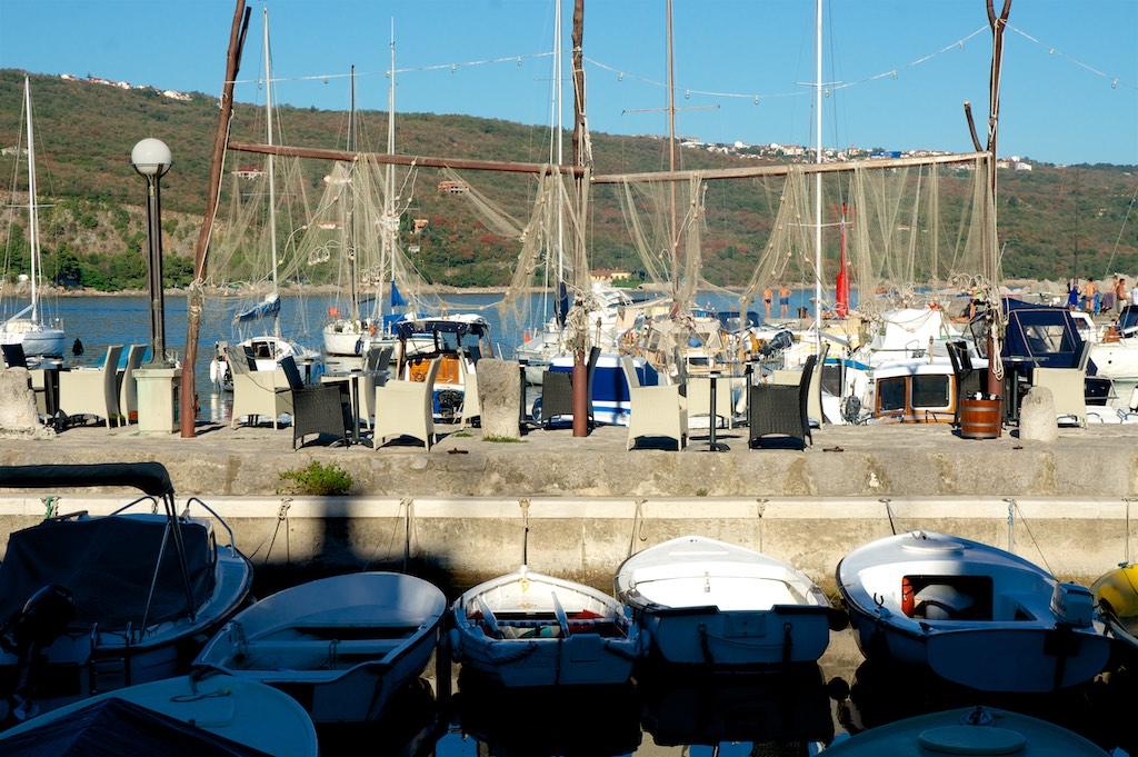 Late afternoon we walked the promenade to a neighboring village called Volosko. The reason for our walk was of course food related. Konoba Tramerka was top choice in Volosko so we just had to try it. We were rather early so we went over to make a reservation for later. Unfortunately so had other and the place was fully booked. Unless we were willing to wait until 20:30 then we could get a table at the small terrace. We did not need long to take that place. So what to do with the remaining three hours in a small village like Volosko. The small harbor brought the solution. On the jetty, under the fishing nets, lounge chairs were setup, definitely the most romantic place to enjoy sunset. The only thing missing was a bottle of cold Croatian white but that was taken care of no much later by a friendly waitress.
