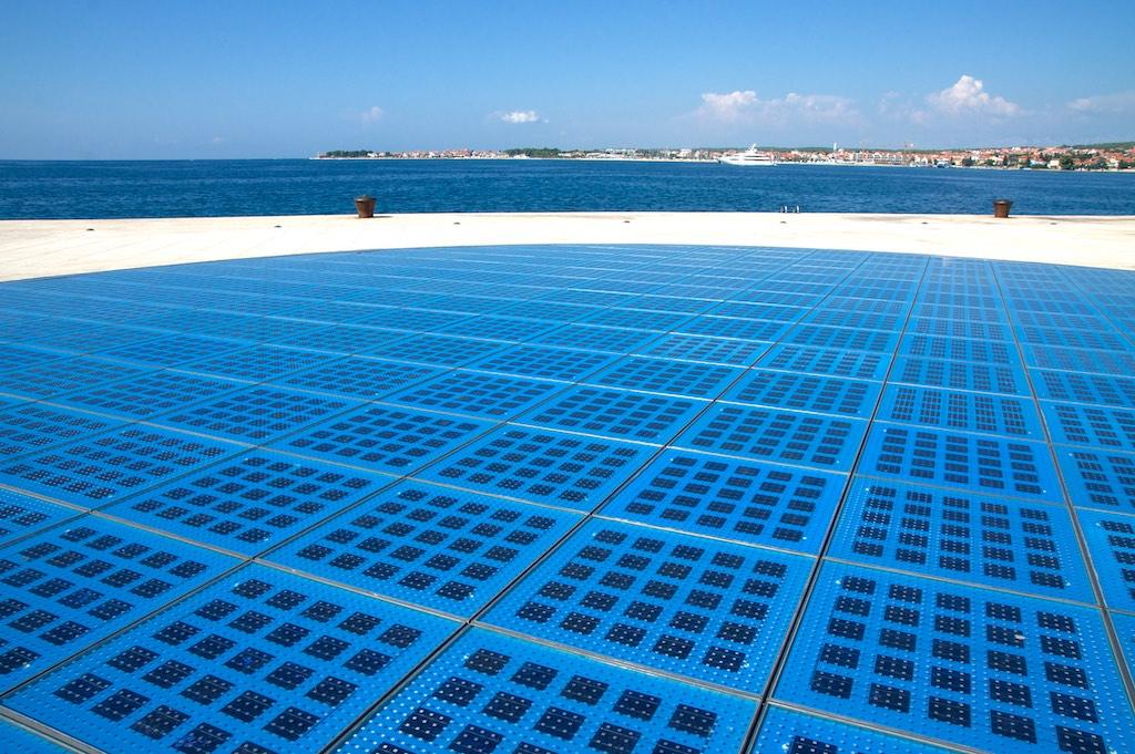 At that very point we found the sea organ. The waves pressed air through a system of holes and tunnels under the boulevard and because of that a constant random sequence of notes was played directed by mother nature herself. Next to it was a piece of art called “Greeting to the sun”, a modern piece which consisted of a large circle of solar panels that was fed by sunlight and created a playful sequence of lights and colors in the evening, this unfortunately we had to skip as we would be back home at Villa Clara by then.