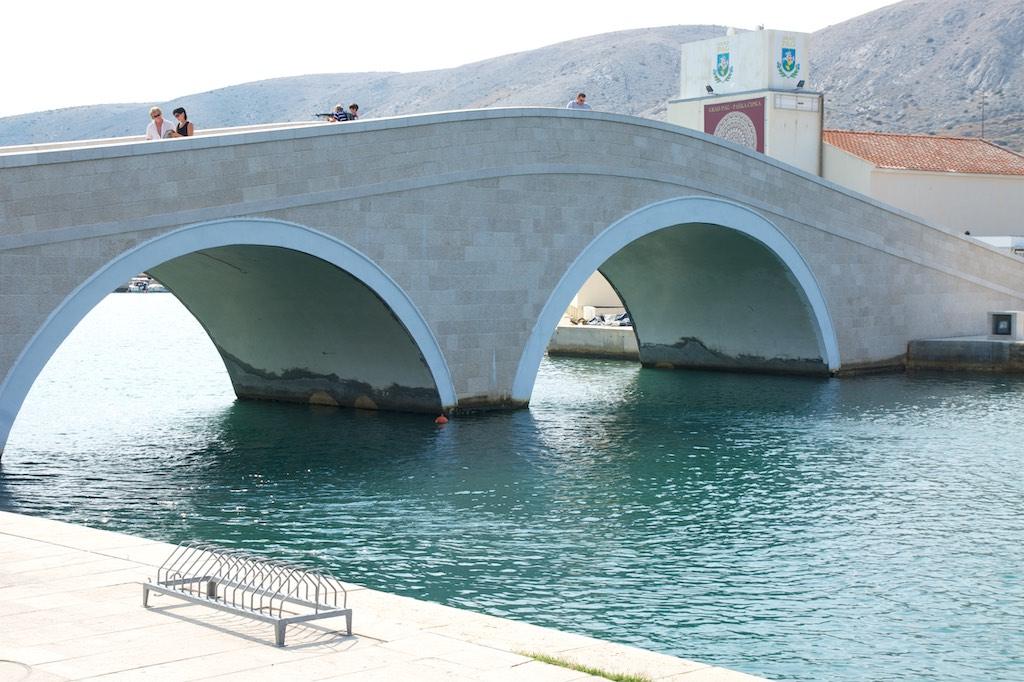 As our GPS did not have a full roadmap of the area it was a bit of trial and error to find our way but we finally did manage to get through Vrsi, Gbre and some other towns with, for the untrained, unpronounceable names. And indeed we managed it to find the bridge leading to Pag island. Pag island is a desolated, barren, rocky empty landscape where nothing seems to grow but some weeds and salty grasses which feed the famous Pag sheep which ehh, were nowhere to be found. Farmers make an attempt to harvest on the miserly soil but all we could see was a moonlike landscape. It even more pronounced the emptiness of Pag island though it also was of a bizarre beauty with the steel colored Adriatic sea around it. We wondered how someone in a right state of mind would come up with the idea to build a town over here, but that had happened indeed. So after half an hour drive we parked our car at Pag town…