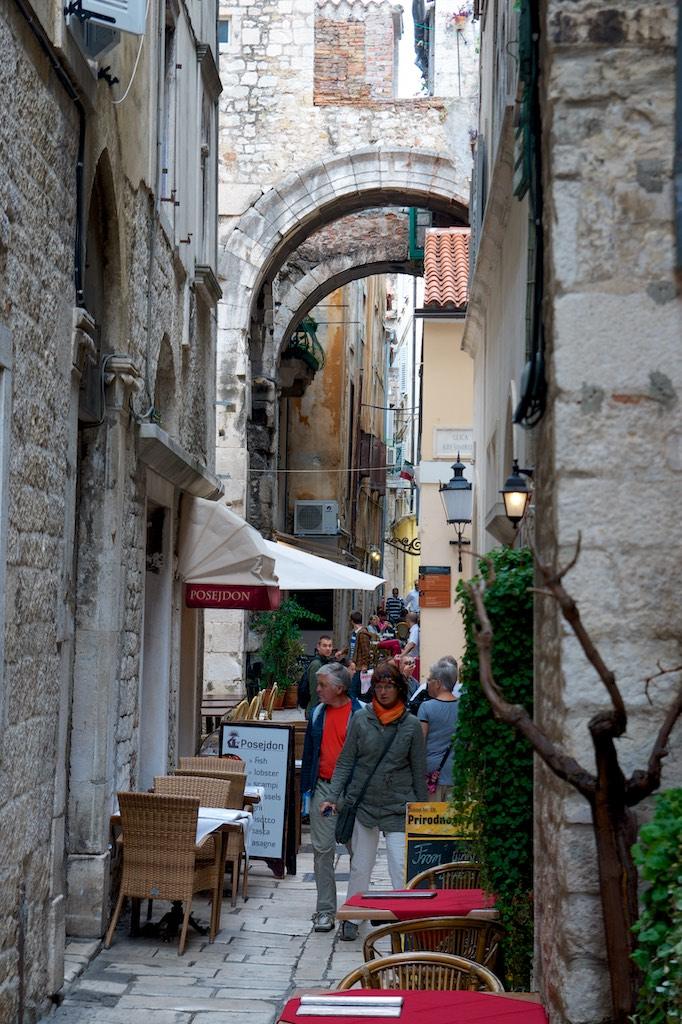 Late morning we continued to Split, Croatia’s 2nd country which laid only 26 km further south. A parking spot was easily found after which we strolled by a market place towards the Diocletian’s Palace which was initially built by the Roman emperor Diocletian between AD 295 and 305. We entered the palace through the bronze gate which lead to the ground floor, built with limestone of the island Brac and which now was one big souvenir stall, both Paul and I could imagine better use of it as an exhibition hall.