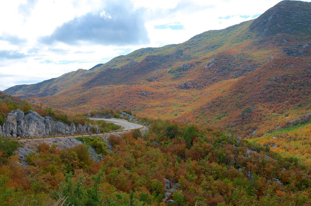 Next morning we opened the shutters…. to see blue sky again!!! The picturesque town of Trogir looked even more picturesque now it was bathing in the warm sun but for us it was time to leave Croatia for a short visit to Bosnia Herzegovina. Our GPS was not loaded with the full map of Croatia and Bosnia Herzegovina so our journey became a bit of a quest. We followed the coastline towards Makarska being stunned by the Adriatic sea on one side and an impressive chain of mountains on the other side. It was in one word, magic! Magic, but nothing compared to what was coming yet. As soon as we left the coastline the landscape turned dramatically. I cannot describe the rough beauty we were passing through. Red, Orange, yellow, green. The bare rocks were covered in a blanket of colors that the trees were exposing. Once again, like in Plitvice National Park both Paul and myself were lacking ohh’s, ahh’s and wow’s. Once again we were gobsmacked by the pure beauty of nature.