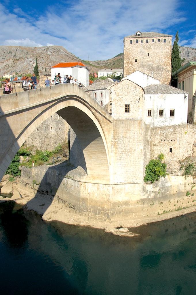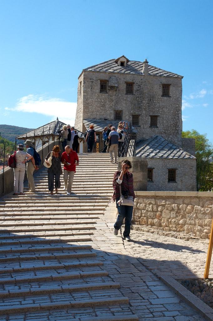 Of course we could not start our exploration of Mostar without getting a glimpse of Stari Most, the old bridge which was totally wrecked during the war but afterwards resurrected in it’s old state using the original techniques. Not only being a symbol of the war but a wonderful structure hanging over a crystal clear river. And it did not disappoint, in contrary it was picture postcard beautiful!