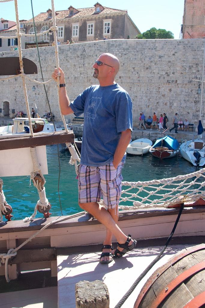 Next morning, after a wonderful breakfast, it was time to return to Croatia, our main destination of this year’s trip. Cross country was beautiful but it was not until we returned to the coastline that our ohh’s and ahh’s returned. Emerald green, turquoise and Safire shades colored the sea which laid deep below the meandering road we were following. It was breathtaking (once again) and after another hour or so we spotted the unmistakable skyline of Dubrovnik. Not for long though as we passed by it and continued on the airport where we returned our rental car and took a bus to to harbor of Dubrovnik.