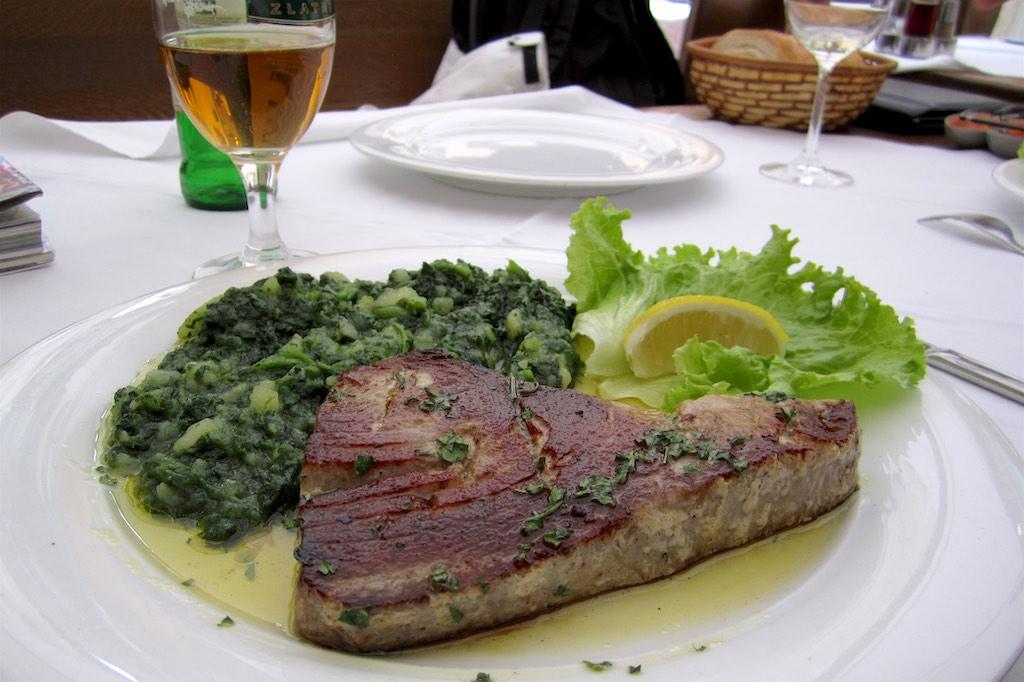 In the evening we went to Tip Top, another recommended seafood restaurant. It was a bit difficult to find but just when I was looking a the map Paul mentioned we were standing just in front of it. Tip Top was a simple, but as we found out, perfect restaurant which is a favorite amongst locals. After we studied the menu card for a while and finally made our choice the waitress made a recommendation for fresh grilled tuna, grilled vegetables and a potato-spinach dish. She could have saved us some effort and mentioned it in the first place. 😉