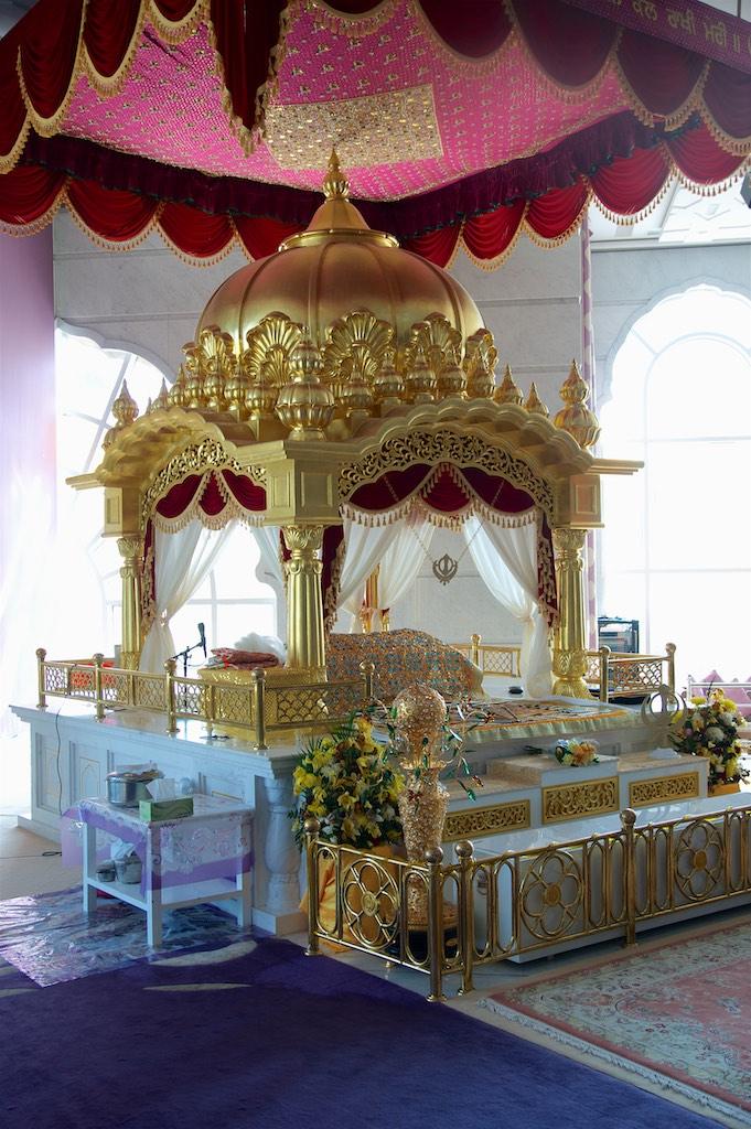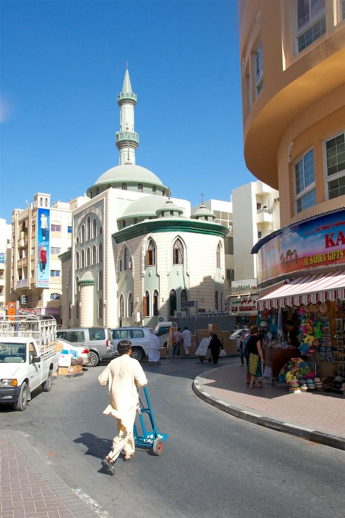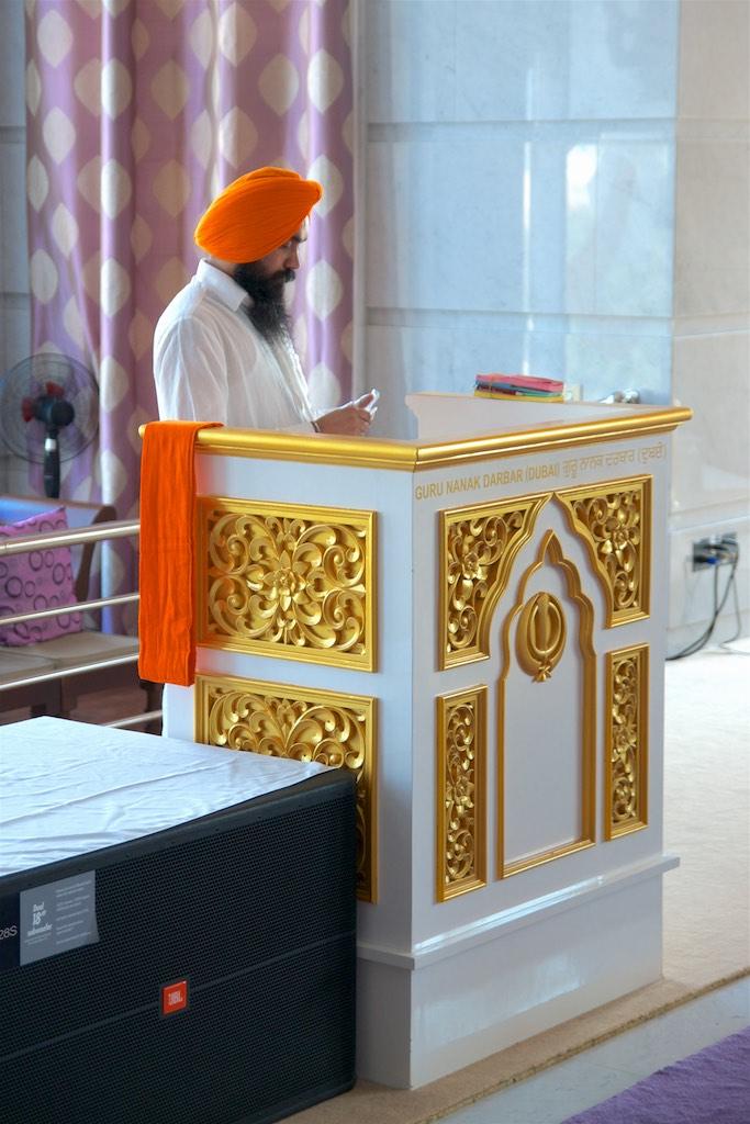 As we really wanted to experience several aspects of Dubai the next morning we had choosen the Gurunanak Darbar Sikh Temple as our next place to visit. It’s a holy Sikh temple for the large Indian expat community in Dubai and although the land was given to the Sikh community it was conveniently tucked far away from daily Dubai life. For us it was a peaceful center of serenity amidst the chaos. A tranquil place to relax and forget about the madness outside. Unfortunately we arrived when no Kirtan ceremony was taking place in the large prayer hall but still we admired the place. Everybody was so friendly and inviting, Paul ended up chatting a long time with the guard who’s son was studying in Bristol. Of course we were not allowed to leave before enjoying an Indian chai (tea) and some sweets. This is typical of Sikh hospitality and reminded us of our visit to a Sikh temple in Delhi where we were invited for lunch.