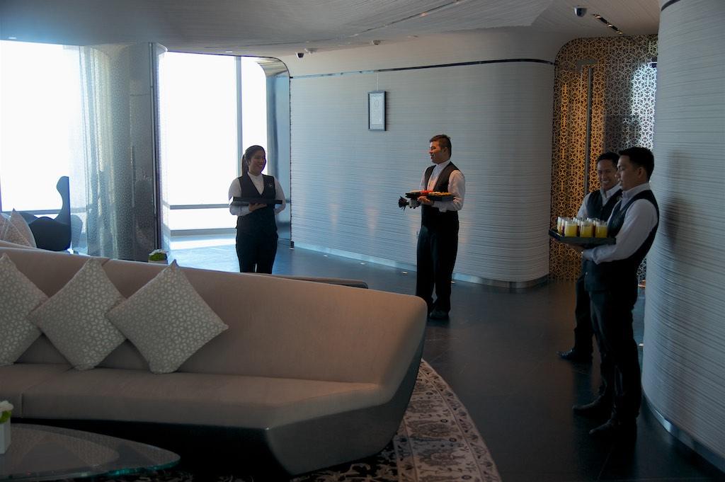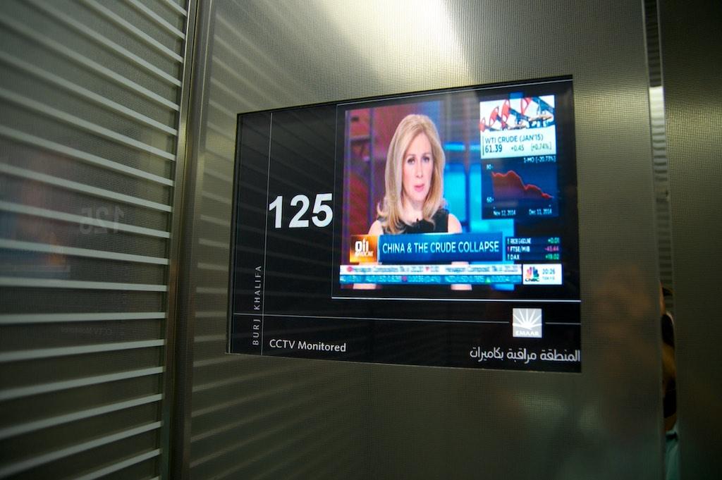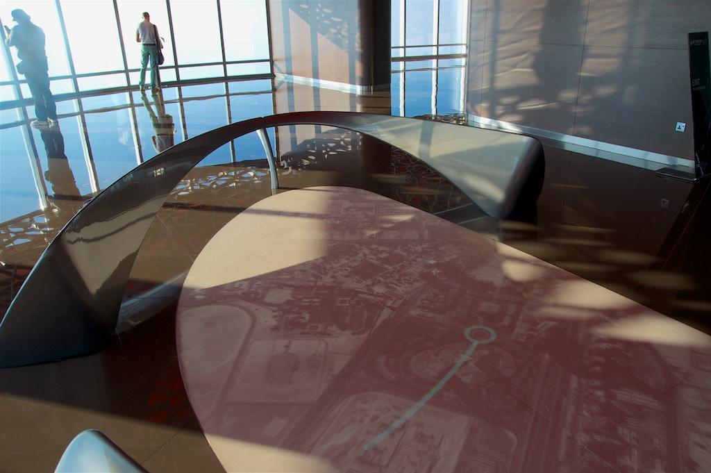 In the elevator we ascended at 10 meters a second past the Pyramids, the Eiffel Tower, the Empire State Building, The CN Tower in Toronto, The Petronas Towers in Kuala Lumpur, Taipei 101, a lot of clouds and… Burj Khalifa. A perfect show to demonstrate the height of the building we were visiting but once the doors opened we had only arrived at the 125th floor and had to walk to another elevator which brought us to the 148th floor.