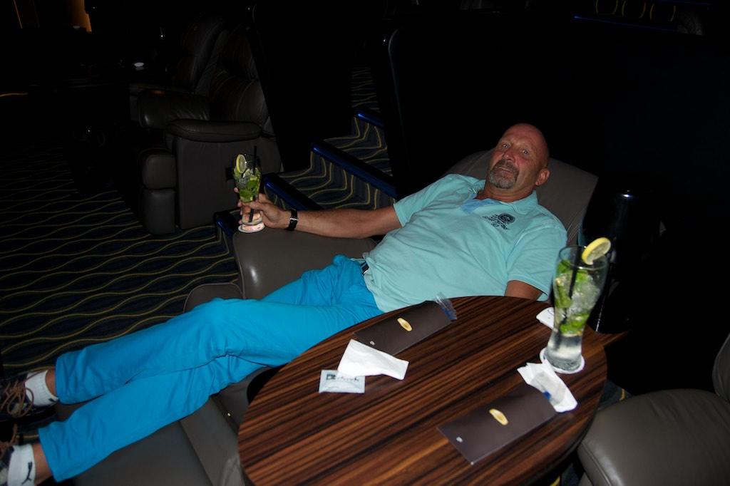 It had been a fantastic day indeed but we were not just done yet… Instead of returning to our hotel we went to the Jumeirah beach area where we strolled over the promenade, watched the world go by and enjoyed a nice dinner. After Dinner we went to the Reel Cinemas to watch the last edition of The Hobbit. And of course this was done in total over the top Dubai style as we had purchased tickets for the Platinum Movie Suite with butler service during the movie. Whilst enjoying a drink in the dedicated lounge we waited for being escorted to our chairs and watched what was going on, it felt a bit surreal…