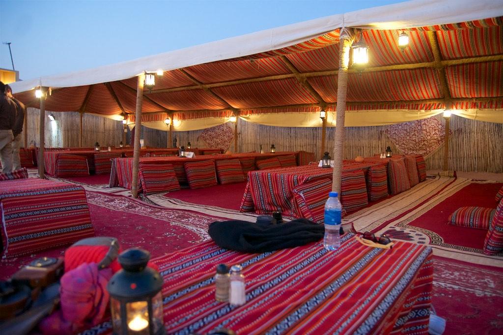 Once the sun had set and we removed the sand from our shoes we went to the final stop for the day, a reconstructed Bedouin camp where we could have a henna tattoo, have a camel ride and witness some typical Arabian handcrafts. We were satisfied with the typical Arabian dinner and accompanying wine that was being served and tasted perfect after a full afternoon of adventures.