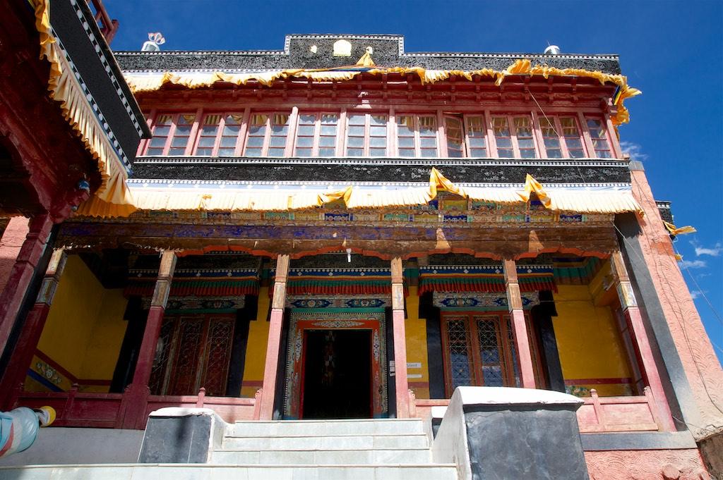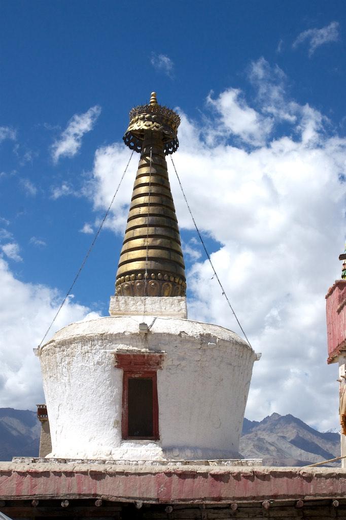 After another 12 hour sleep Paul still had difficulties waking me up. The traveling had really caught up with me and I needed to rest. Today would be a day of sightseeing in and around Leh. Our first place to visit was Shey Palace, a wonderful Buddhist monument. On the side of the path leading to the palace were prayer wheels and of course we rotated them clockwise to spread the blessings in the sky. Inside the palace was a small shrine with a 2 story high copper Buddha statue. Beautiful frescos covered the wall and we could enjoy some of the deities to be seen around the Buddha. What a place!