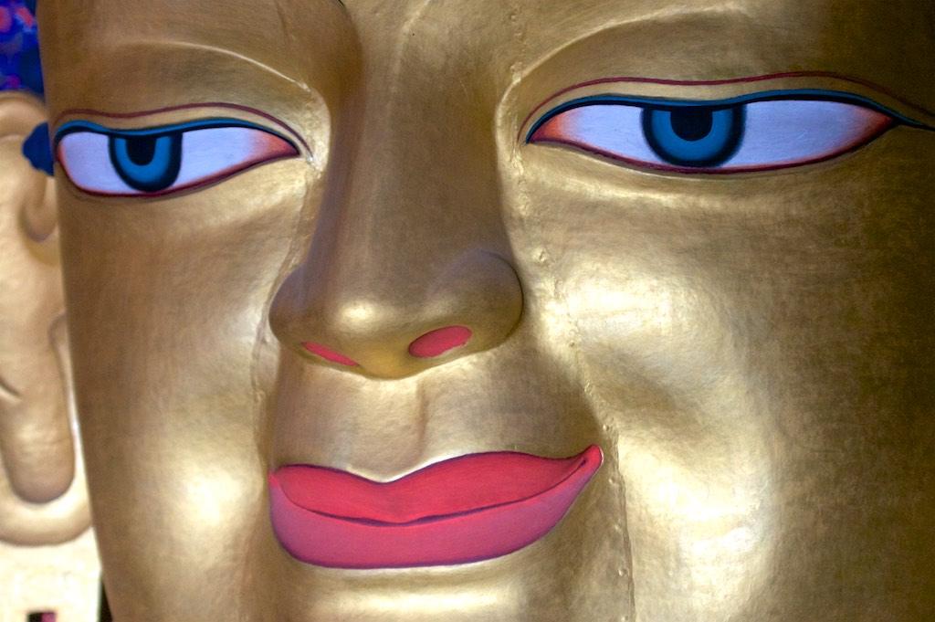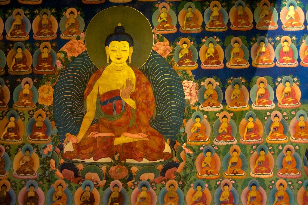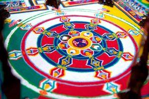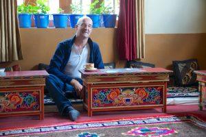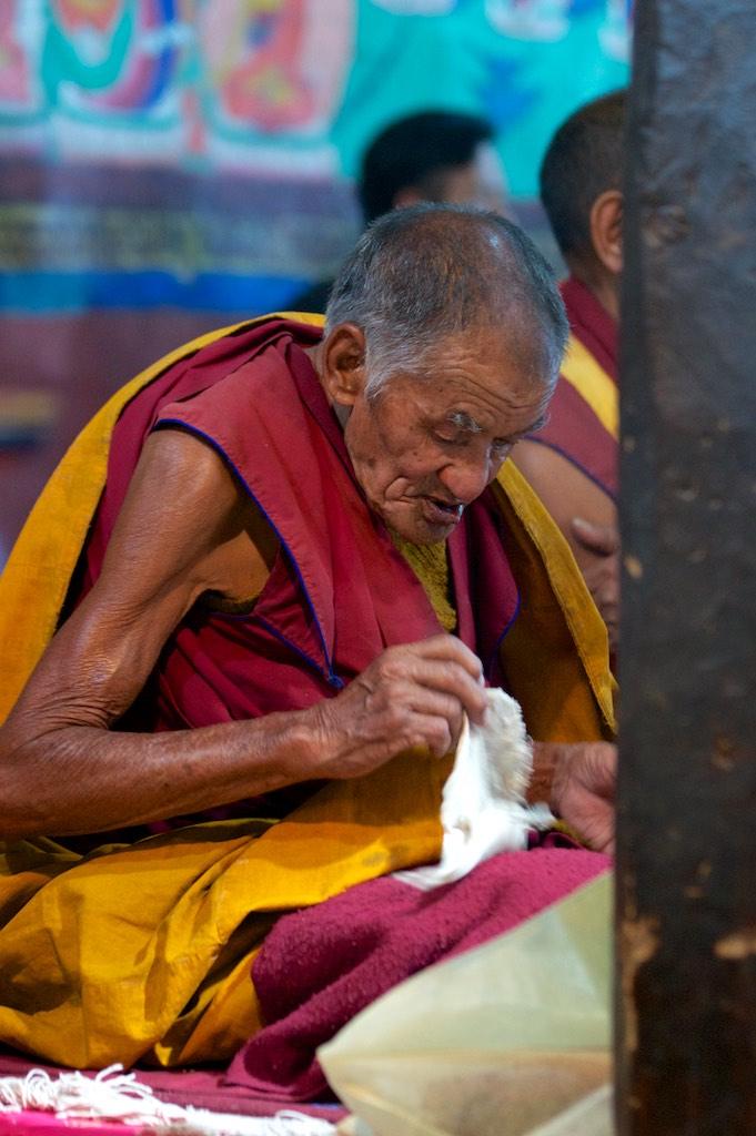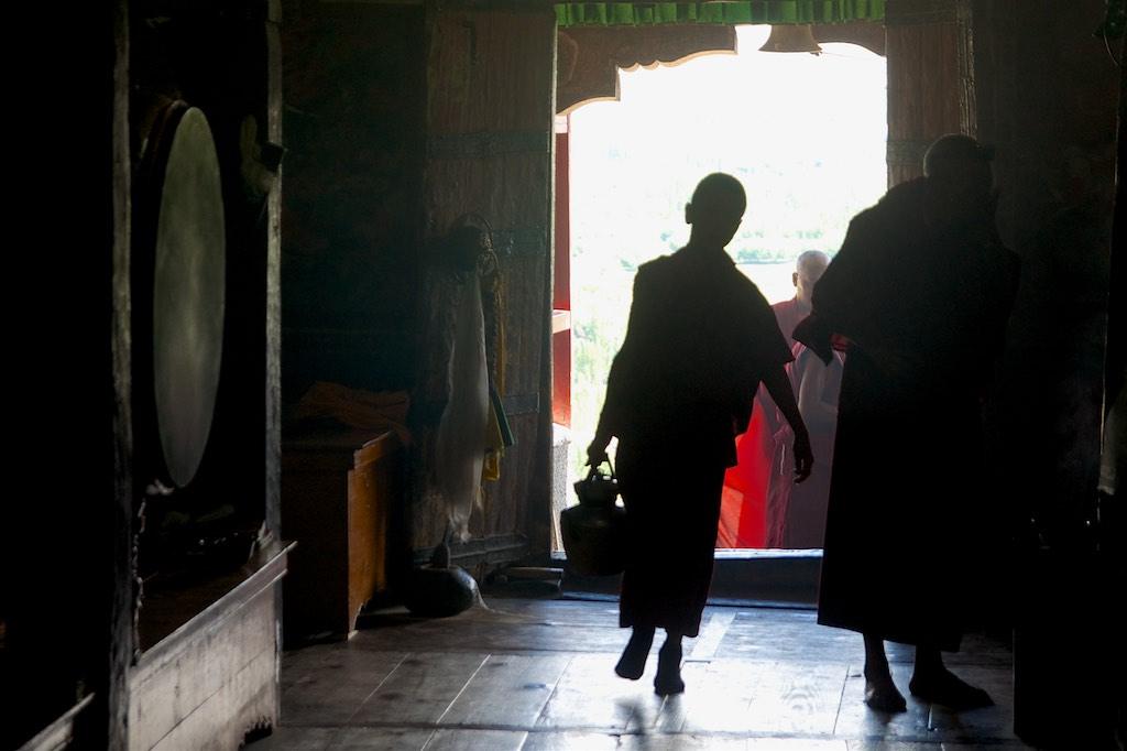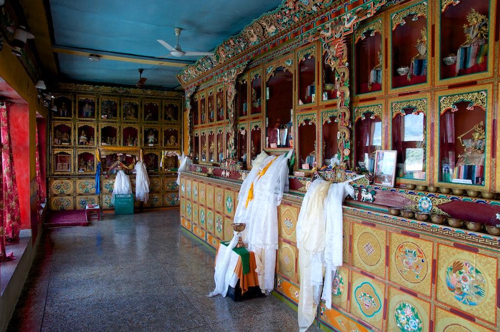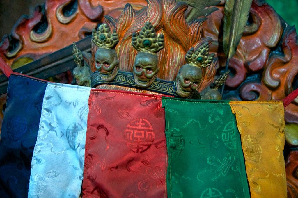 Whilst listening to the prayers we slowly moved around the prayer hall to admire the frescos, the numerous statues and the decorative pieces of cloth hanging down from the pillars. In the back room we could see a giant Buddha but at the moment I discovered a beautiful sand mandala my heart skipped a couple of beats. The amount of detail was overwhelming, it was like a beautiful picture but then totally made of sand. The monks must have worked months on it, only to be wiped away during a special ceremony, proving the mortality of everything.