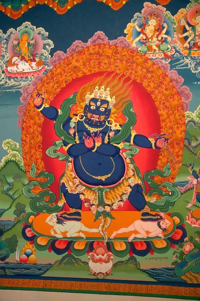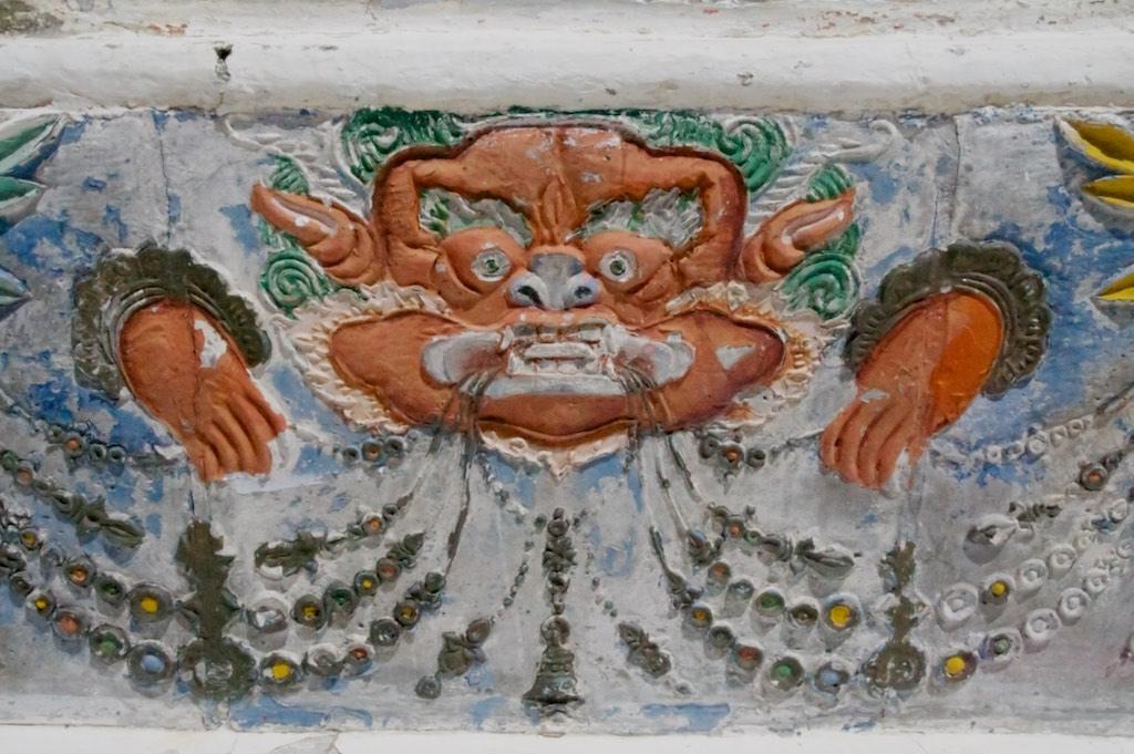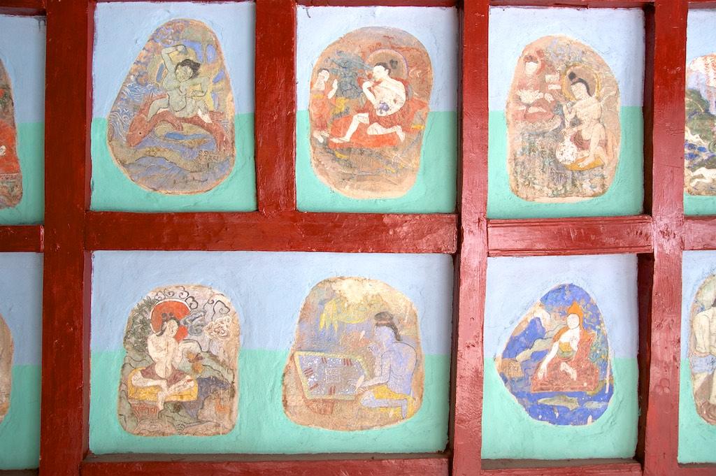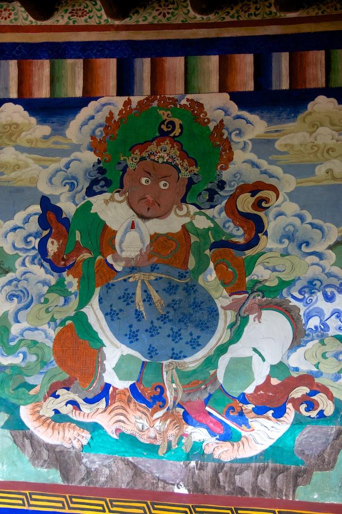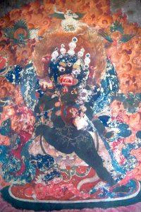 There were several other temples to be visited, each devoted to their own deities and each with it’s own special character. We visited one of the older temples in the monastery which was kept quite dark. the frescos over here were in their original unrestored state.