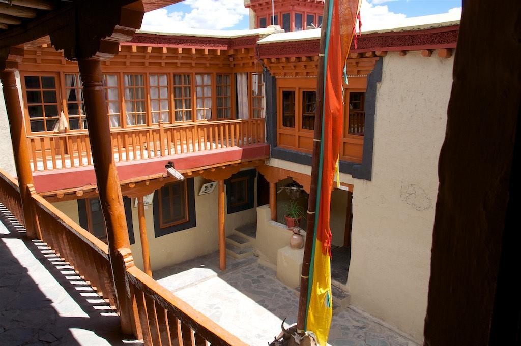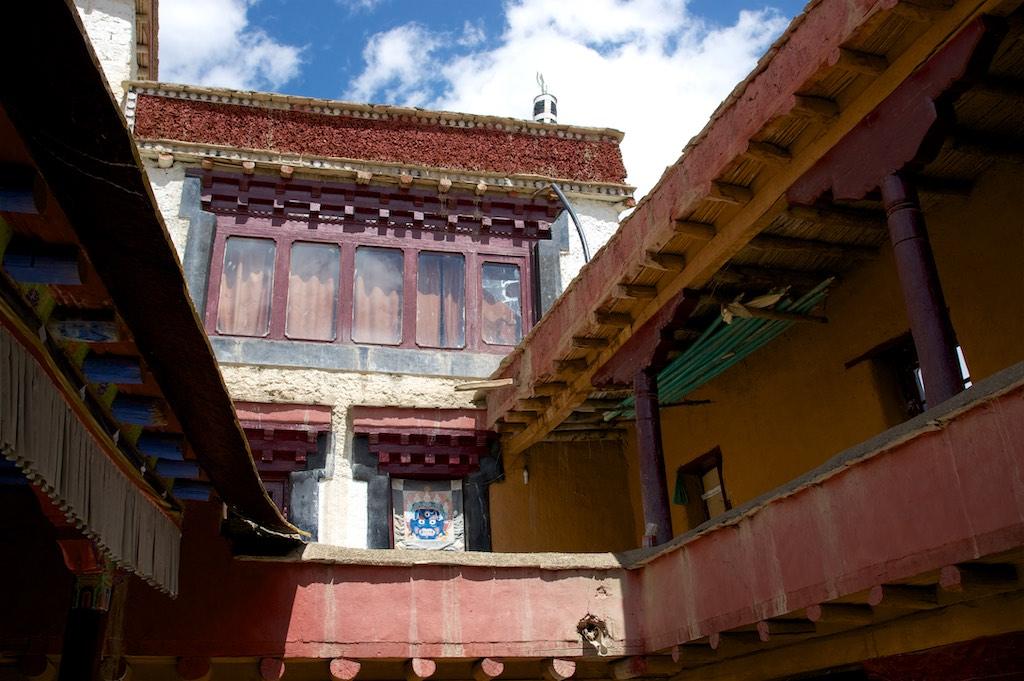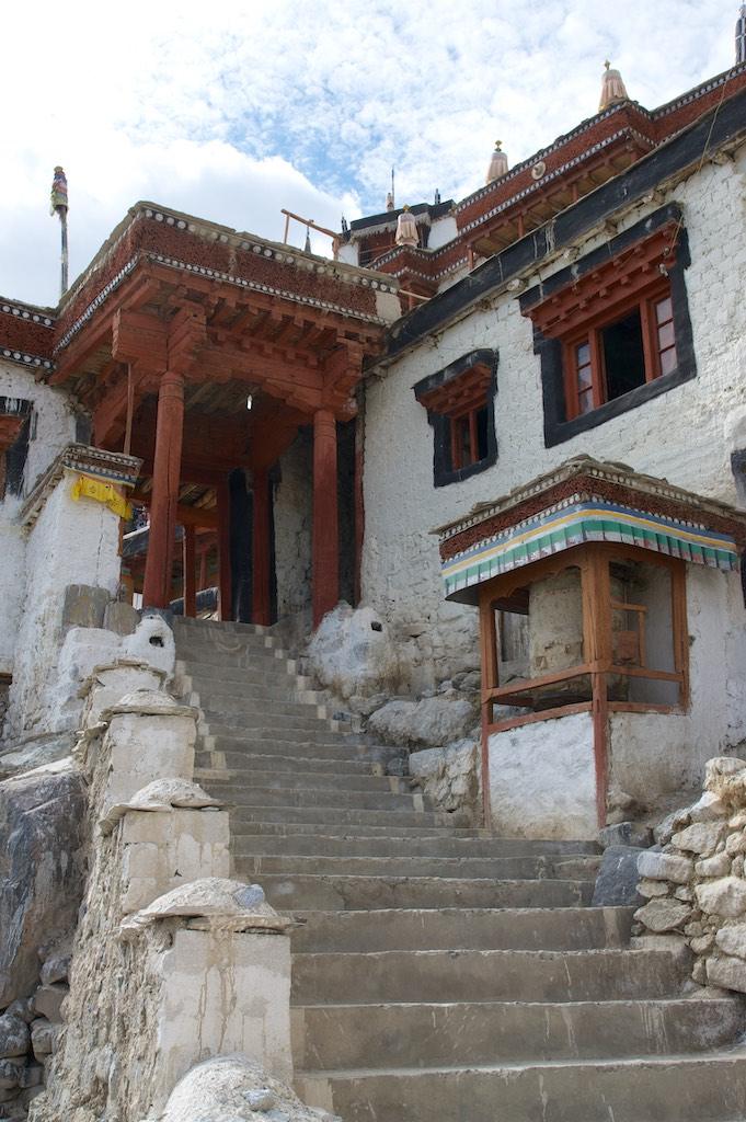 Unfortunately the Photang of the Dalai Lama which exhibited an splendid collection of ancient Thankas was closed so we made it to the monastery itself. Tensing told us we had to climb 120 steps, not an easy task under the circumstances of this thin air. Although we had descended from Khardong-La pass we still found ourselves at a height of over 3500 meters.