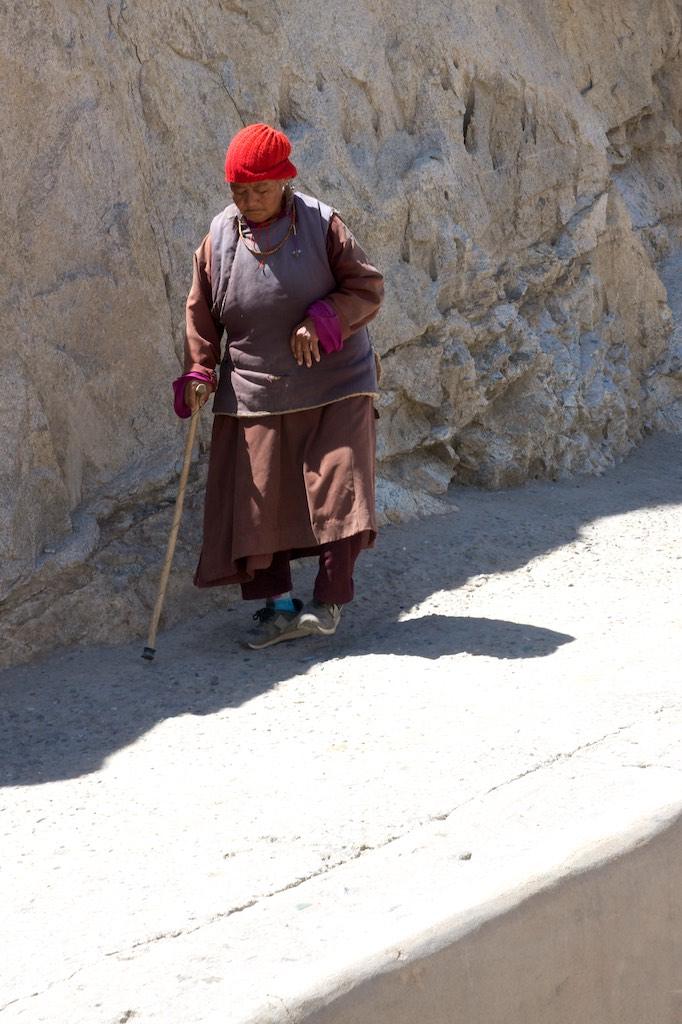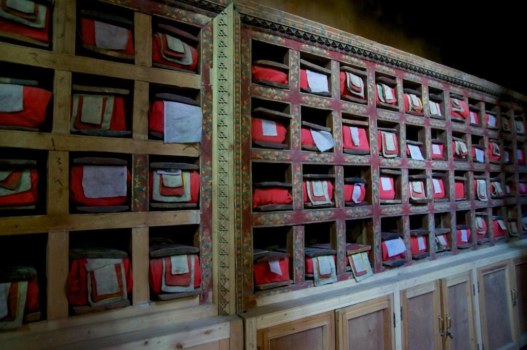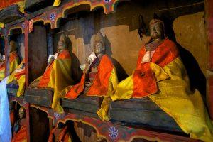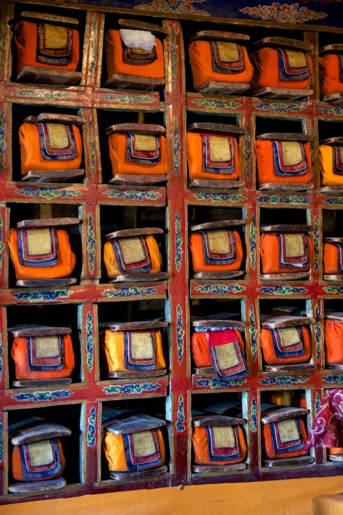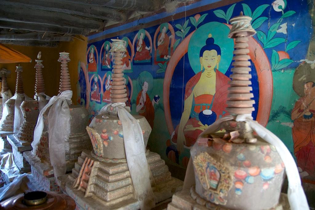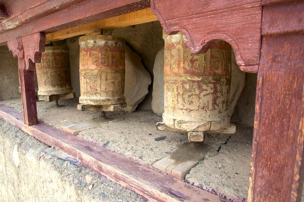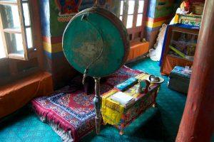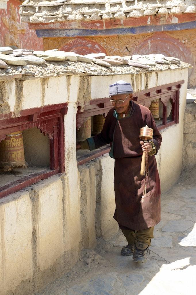 Originally the monastery was made of 5 main buildings but there is only one currently left, surrounded by some ruins. Although Paul had had his share of gompas I could not get enough strolling through the labyrinth of stairs, alleys and open areas in order to find more temples and interesting places. I was so delighted to find a room filled with stupas and ancient black hats, only used in ceremonies once a year.