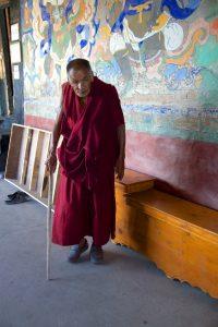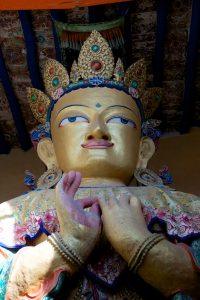 The Diskit Gompa was originally built in the 15th century and some parts certainly had suffered from the teeth of time. Still there were three beautiful temples to be seen. first we went in the old prayer hall where a most stunning collection of statues and deities were to be seen. Unfortunately,it was not allowed to make pictures there and a monk was making sure everybody obeyed that rule.