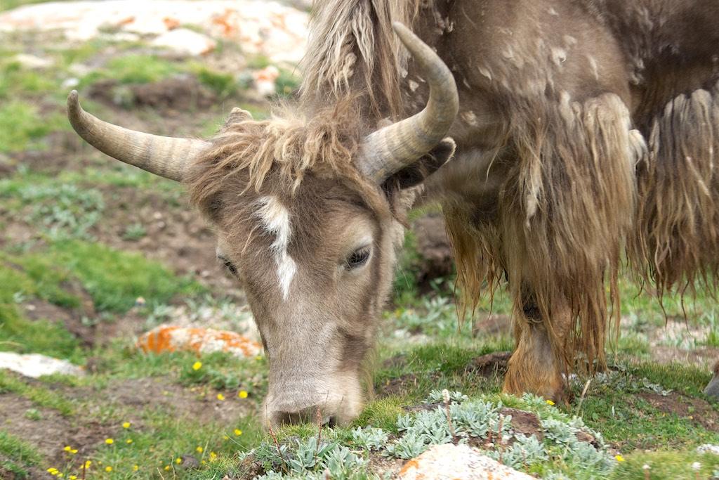 Like the ascend it was nice and controlled with no steep cliffs close to the road, I was, once again, a happy traveller. At one point we passed some fields where sparse grass was growing, this was where we saw our first herd of yaks. It was a large herd with mainly female yaks but we spotted a single bull in the herd.