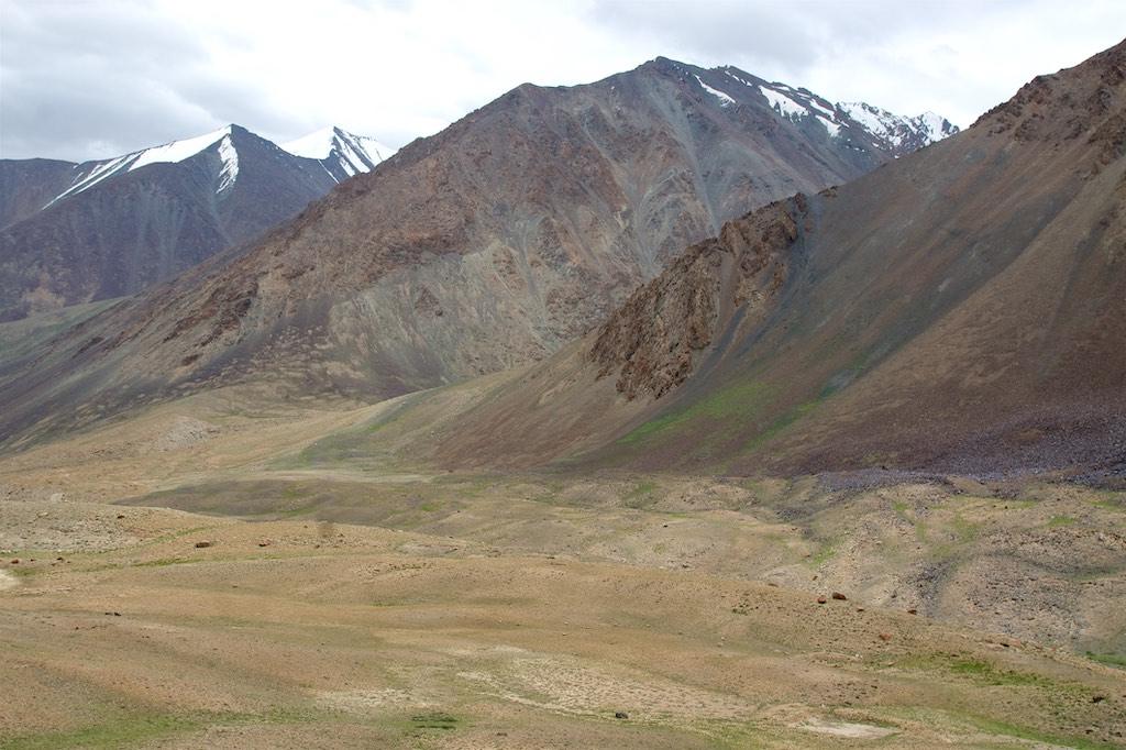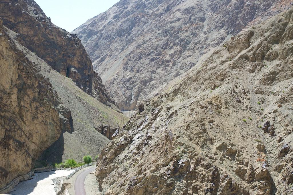 From where we were driving we had a stunning look over the valleys. The contrast of the fresh green valleys where locals were growing crops with the bare steep mountains could not have been bigger. The mountains were constantly changing colors and texture. Grey, dark brown, beige, and sometimes even shades of green. Massive rocks, big boulders and sometimes smaller stones. We could see traces of avalanches, waterfalls and small lakes. Some of the summits were covered in thick layers of snow and ice which made a wonderful contrast with the deep blue skies and patches of clouds.