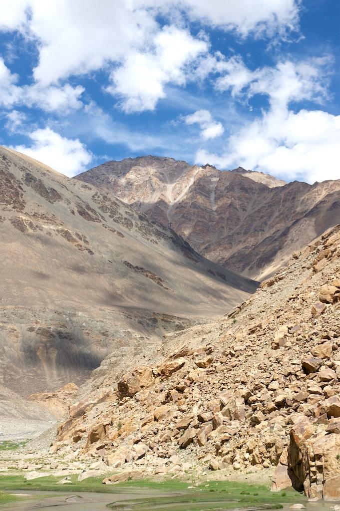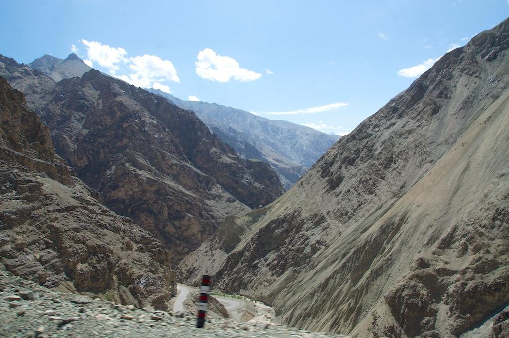 A very good night of sleep, an early breakfast and we were on the road again. Our first stop would have been the Thiksey monastery but as the road was blocked due to road works Thansing, our driver, decided to postpone the visit until our return to Leh tomorrow. As soon as we left the valley we found ourselves in a bare, desolate landscape. It did not take long before we started to climb but fortunately the roads were in much better shape than 2 days ago. There were still a couple of frightening moments but Thansing was a much calmer driver than the one we had on the trip from Chandigarh to Leh, this certainly helped to keep my blood pressure at a more acceptable level. Still I closed my eyes a couple of times.