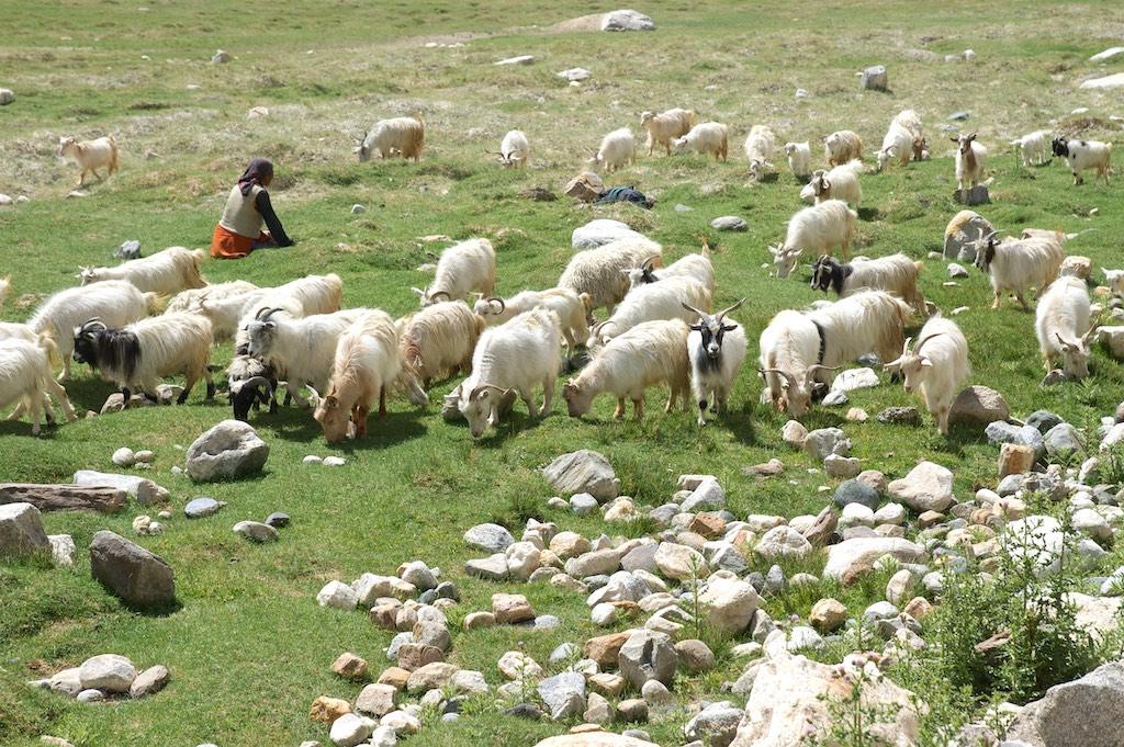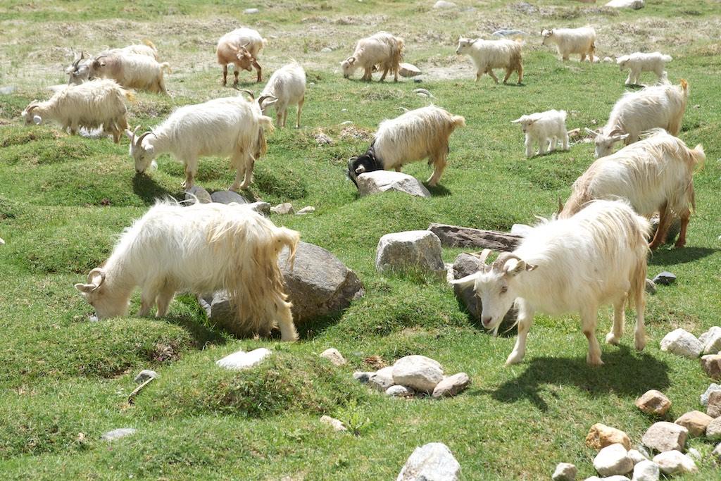 Not much later we passed a flock of pashmina goats and two goat herdesses, the goats were very curious, came close by and even licked my hand. Still they were extremely alert as one unexpected move made them jump back into the safety of the herd.