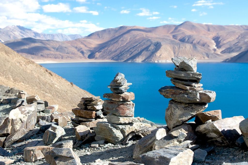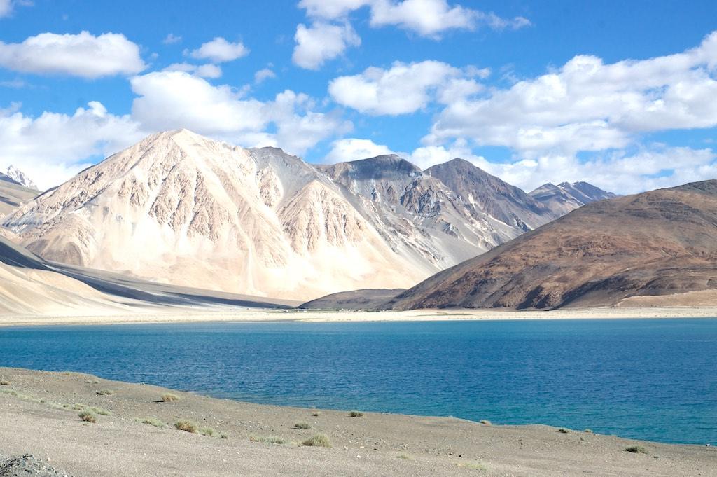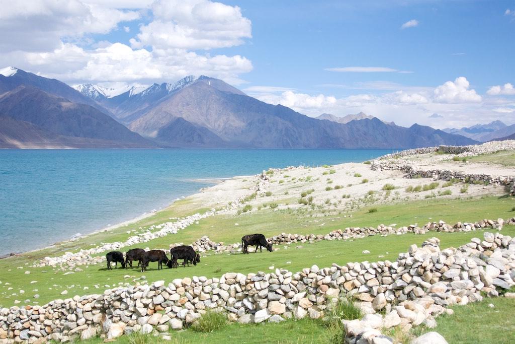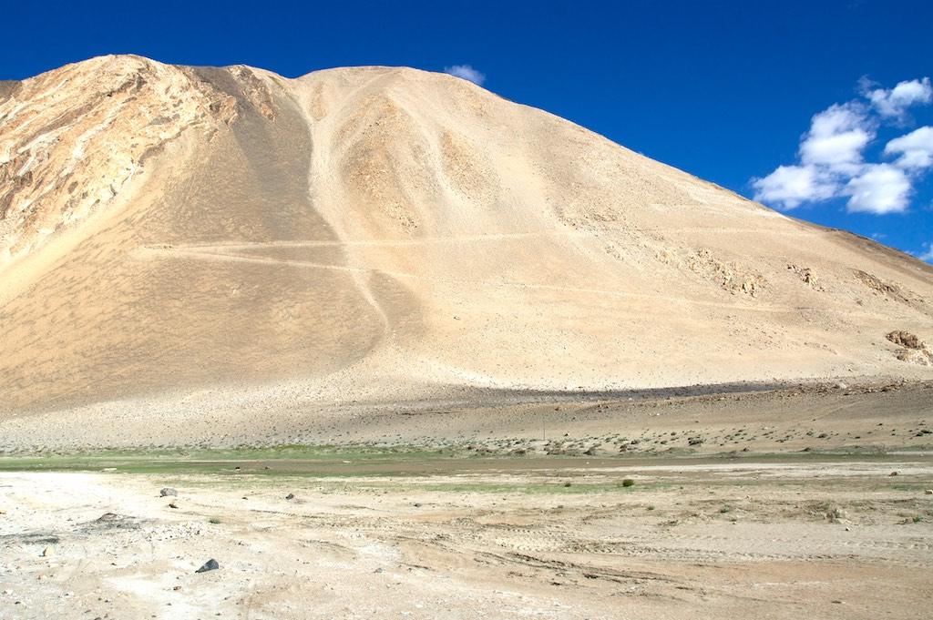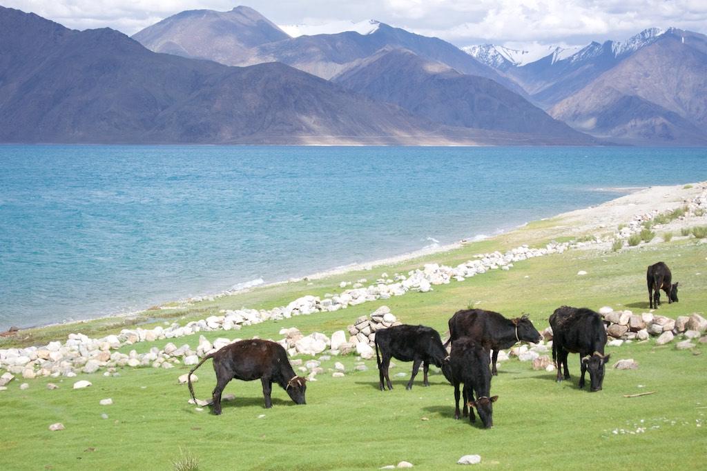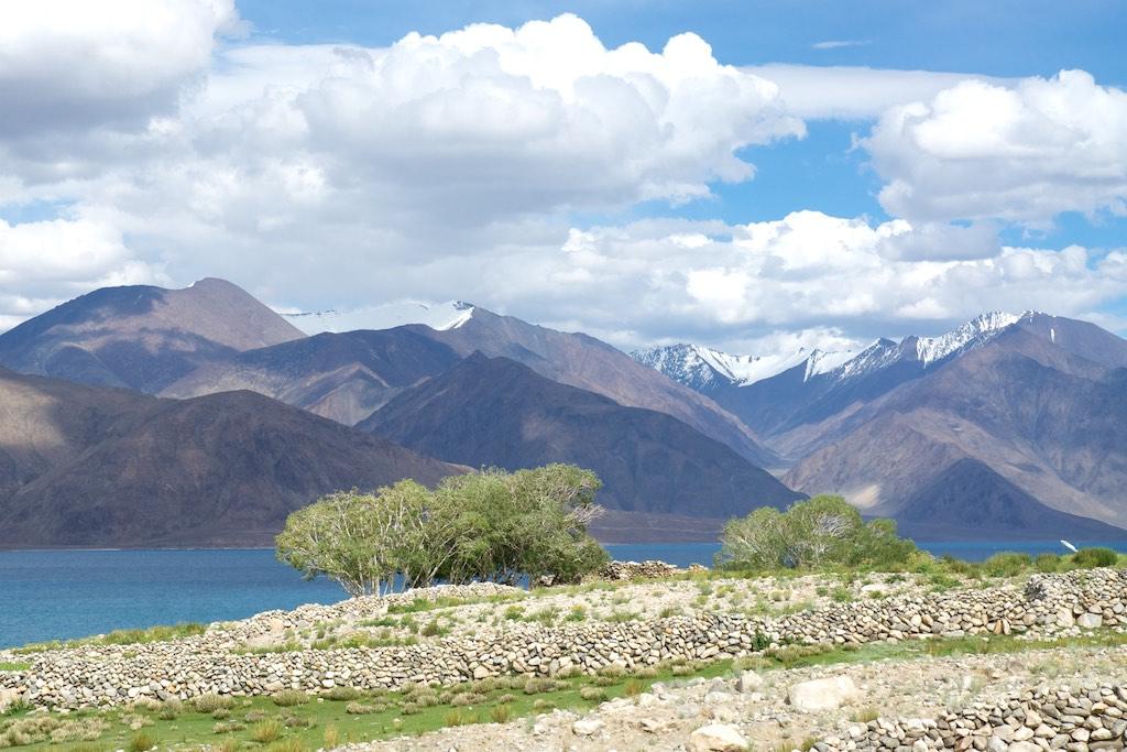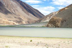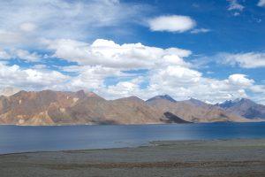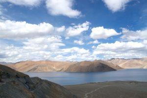 Finally we could get the first glimpse of Pangon lake. Its blue green waters reflect the mountains of the Changchenmo range. the Pangon lake, situated at 4.267 meters height is the largest brackish water lake in Asia, or maybe it is better to call it a sea as it is 150 km long and varies width between 2 to 10 km.