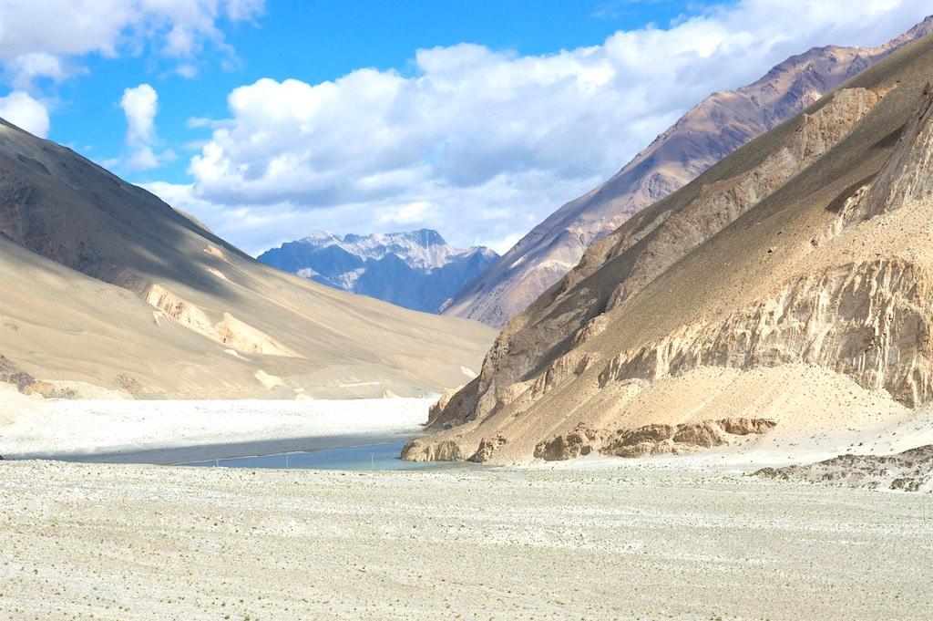 The road had deteriorated by now but still the both of us managed to keep our nerves, except a couple of hair raising moments. The valley was completely grey and only after a while we could see a river running, a river that was as grey as its surroundings, saturated by the Himalayan soil.