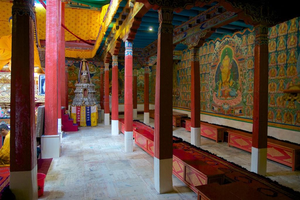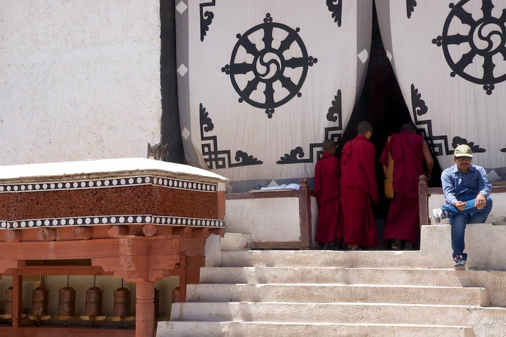 The first place to visit was the Samtanling monastery. It was quite a modern build,, only established in 1972, and besides the old prayer hall that was especially opened for us by a monk, it did not leave that much of an impression. we were missing the livelihood that we experienced the day before at Thiksey.