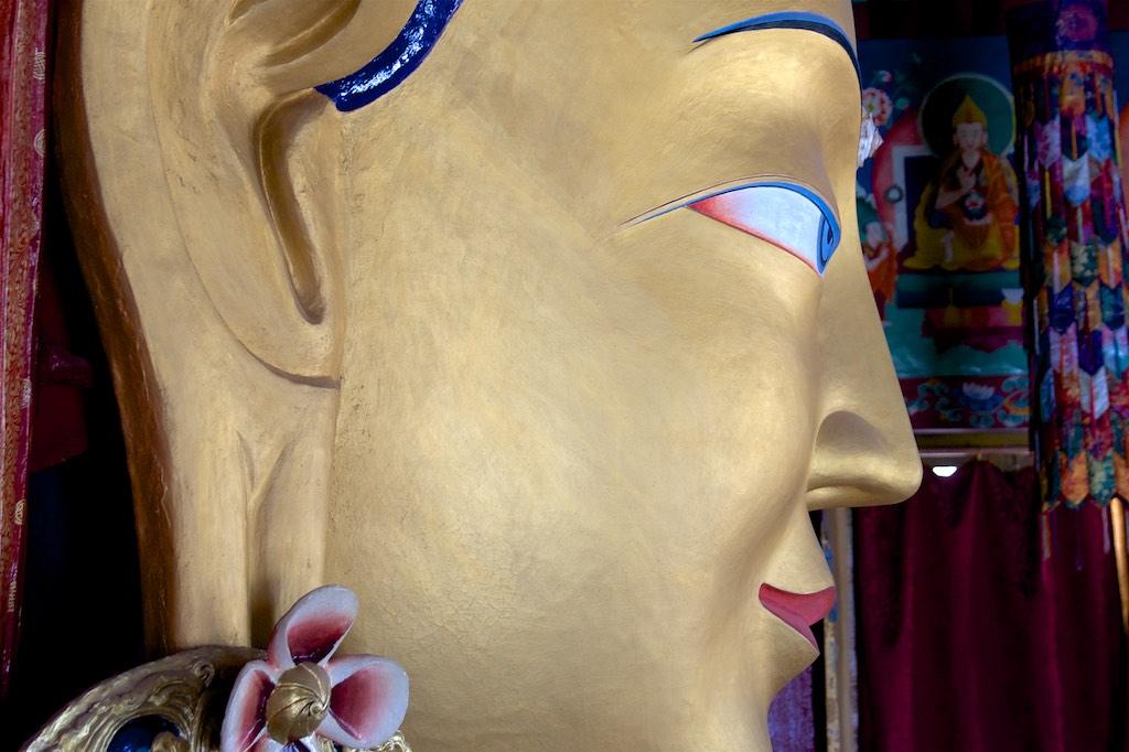 Next morning neither of us did want to get out of bed as breathing was still difficult and a basic thing like brushing teeth seemed to be a major task. We packed our bags, enjoyed breakfast and sharp at eight left the camp on our way to Diskit monastery. The monastery itself was beautifully located on a rugged cliffside but all attention was drawn towards an enormous statue of the Maitreya Buddha that was inaugurated by the Dalai Lama only in 2010. The statue was massive indeed and we felt dwarfed by standing in its presence.