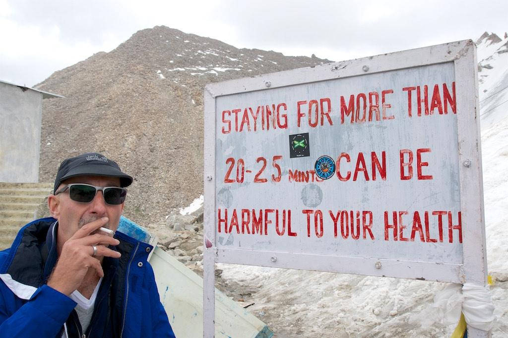 After about an hour and a half we arrived at Khardong-La pass at a whopping height of 5602 meters height, a truly breathtaking experience. The views were staggering, from once side we could see the valley where lay was located and from the other side we looked into the Nubra valey. further there was not much to see and we were clearly warned by a sign that staying longer than 20-25 minutes at this altitude could be harmful for our health…