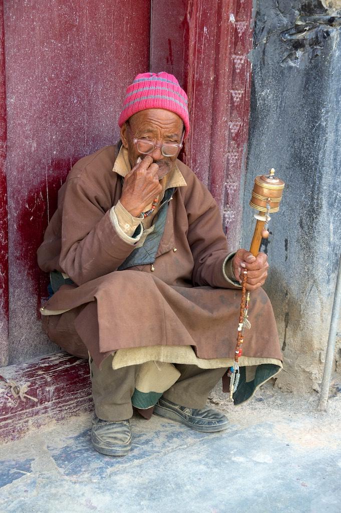Next to the restaurant an old man, dressed in original clothes and boots made of yak skin, sat in the sun. I could not miss out on the opportunity and fortunately he agreed upon his picture taken.