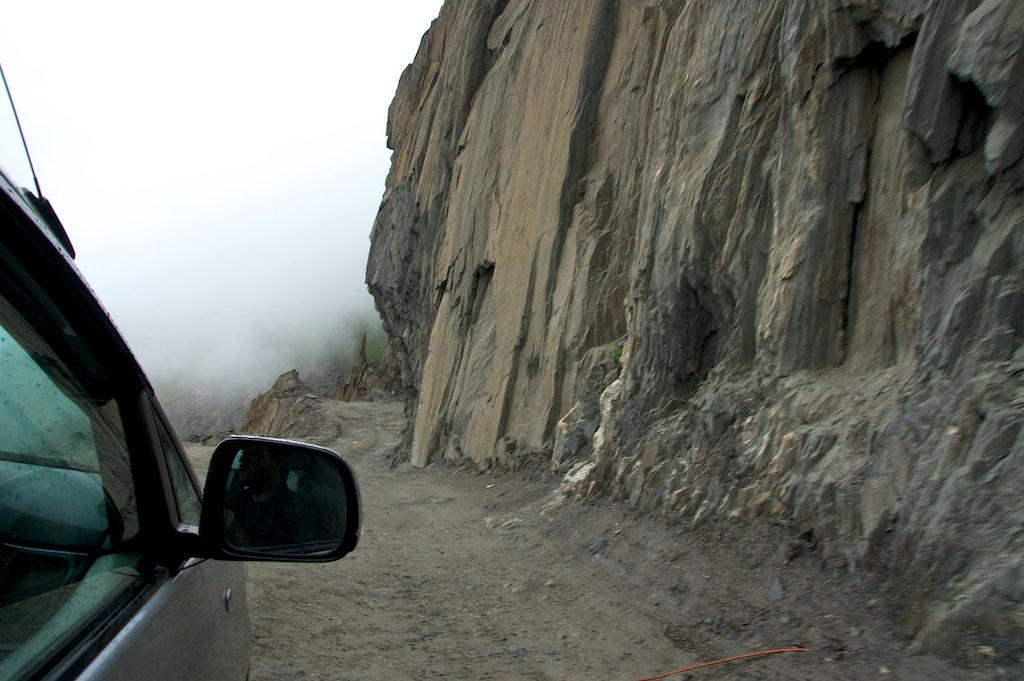 And just when we were getting used to the beautifully tarred road conditions changed dramatically as soon as we started to descend. A path, not wide enough to allow 2 vehicles next to each other, no barriers to protect us from crashing into the valley which was now hundreds of meters below us and to make things worse… The rain has turned the path into a muddy and slippery track so all ingredients were present for some more hair raising moments. We even had to stop a couple of times and patiently wait for a landslide to take its course and made the track even bumpier than it already was.