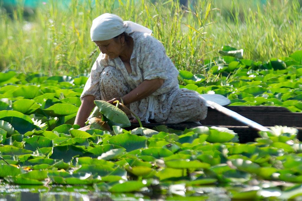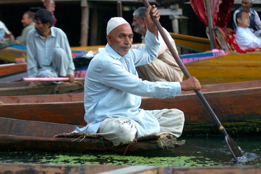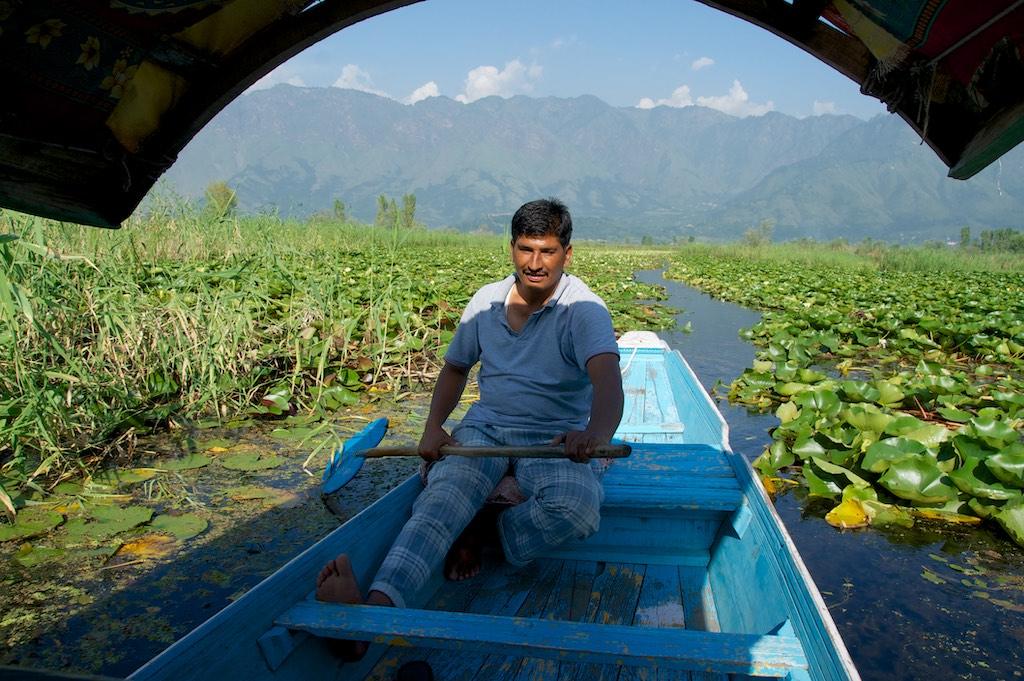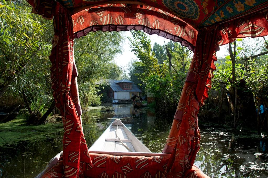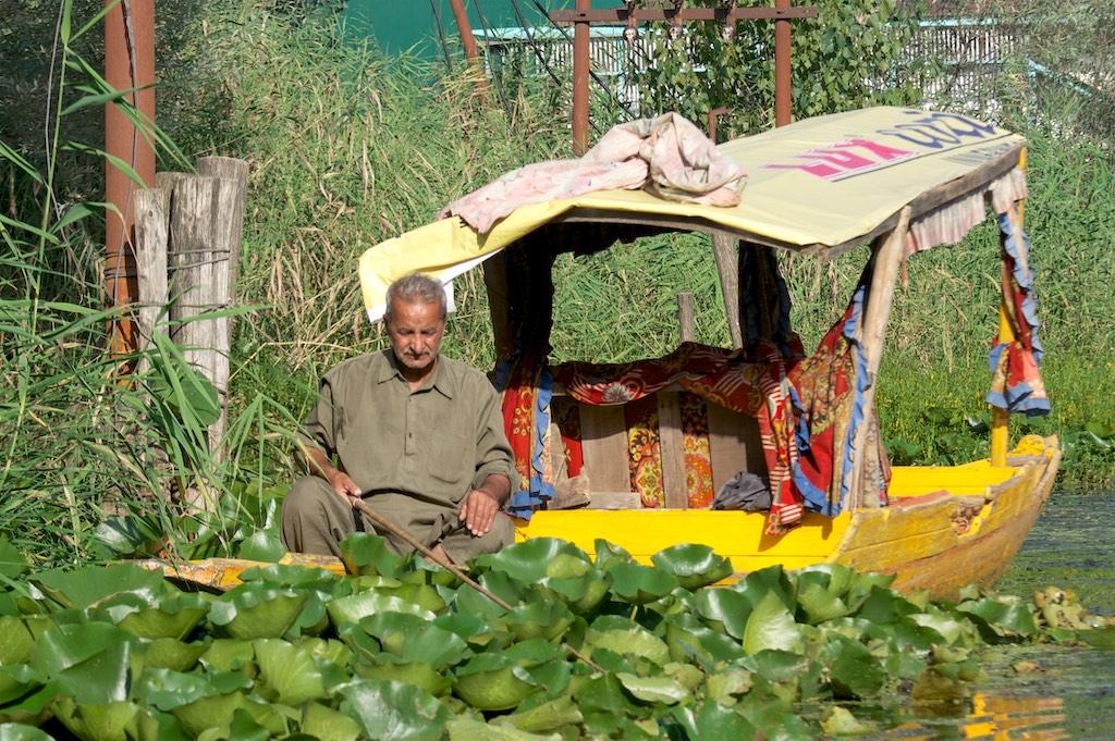 Srinagar, the Venice of India, as soon as we hit the streets we entered a bustling world full traffic chaos, so typical for a modern Indian city. Fortunately we were to leave that behind us as we were going to stay on a houseboat at Dal lake. Our driver dropped us at a point where several gondolas were moored and very soon we could enjoy a short trip to our houseboat. Several boats were pretty close to the city but the more we floated through the channels the more quieter it became, we could only hear the peddling of the boatsman.