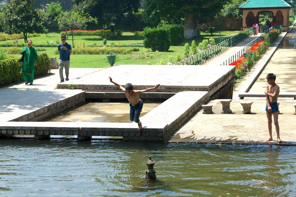 There are multiple Mughal gardens in Srinagar and the second one we visited was the Nishat Bagh, garden of joy. This garden has a total of 12 terraces and waterfalls. As we could see it was tremendously popular with the locals enjoying a bit of serenity to be far away of the chaotic streets of Srinagar. The both of us thought this garden was even more beautiful than the previous one we visited, maybe because of the abundance of flowers, the architecture of the 12 terraces and the views over Dal lake.