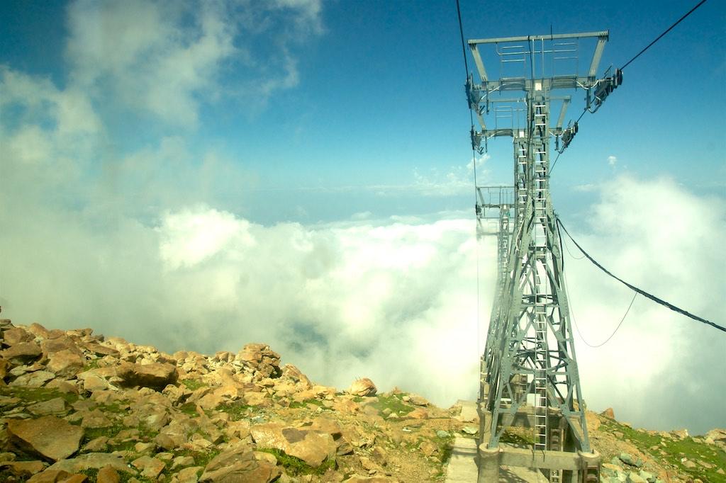 Once again the right left us through beautiful,scenery, that was until we were covered in a thick layer of clouds and we could only guess where we were going. Not much later we broke the clouds again and now watched out over the clouds, gasping at some mountain peaks at the horizon. The 2nd gondola station was not far now and now we found ourselves once again over 4000 meters. In winter time Gulmarg is the prime Indian skiing resort and everything was catering for this. A bit further of the summit were the remains of a melting glacier and from the buzz what was going on there hundreds of Indians were esthetically enjoying their first experience of snow. It was a scene not to be missed!