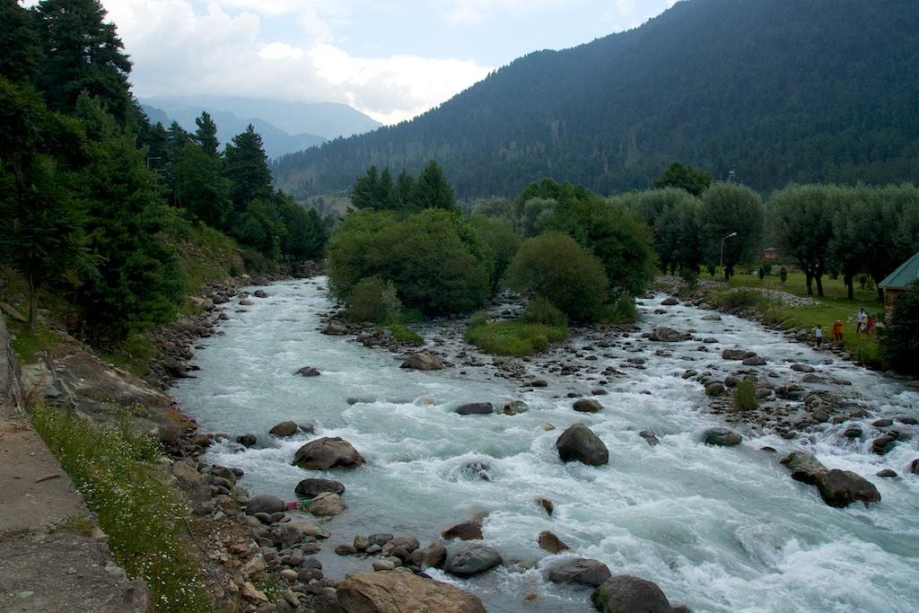 As soon as we arrived in Srinagar we were quickly absorbed again by the chaotic travel. It took us at least an hour and a half to get through and then the landscape changed dramatically. Dense pine forests at both side of the valley and in the middle a silver green river meandering its way downstream. It was lush and beautiful.