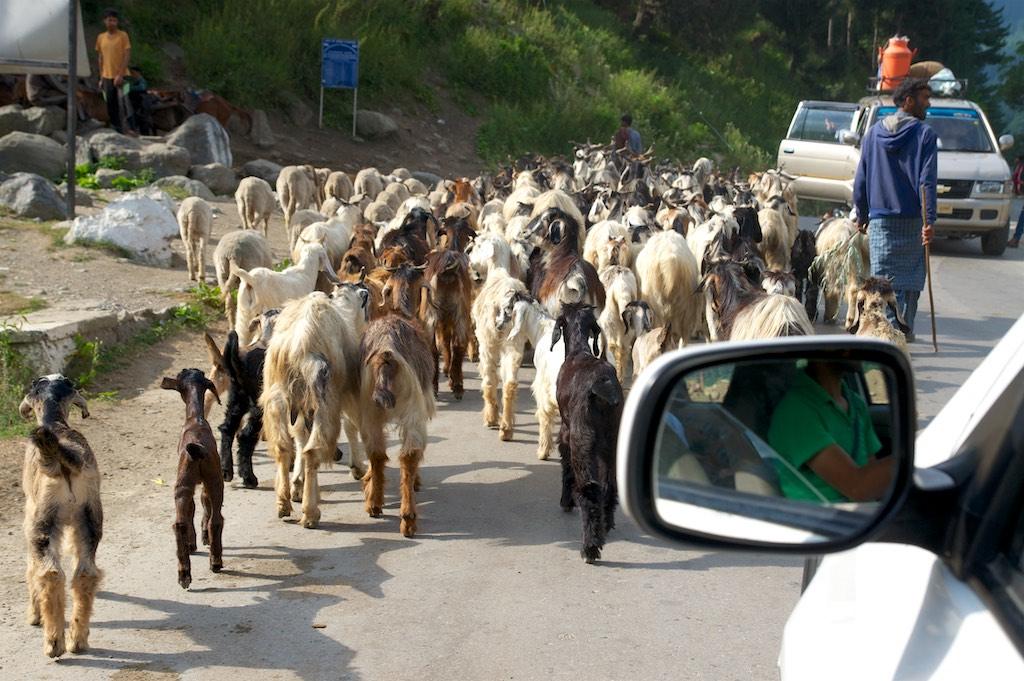 Traffic in Srinagar was horrendous and chaotic so it took us over an hour to get out of the city premises. This time it really struck us how dirty the city was, especially compared to the cities in Ladakh there was an abundance of dirt around the roads. Cows were feeding themselves on the garbage, sheep and goats on the side of the road and sometimes even in the middle of the road. There was quite a bit of graffiti calling out for an independent Kashmir. Go India, go back. From the comfort of our car it was still an amusing experience though.