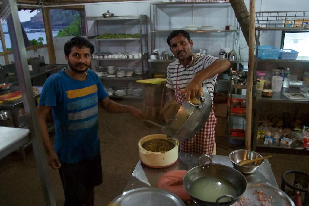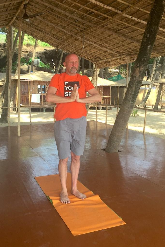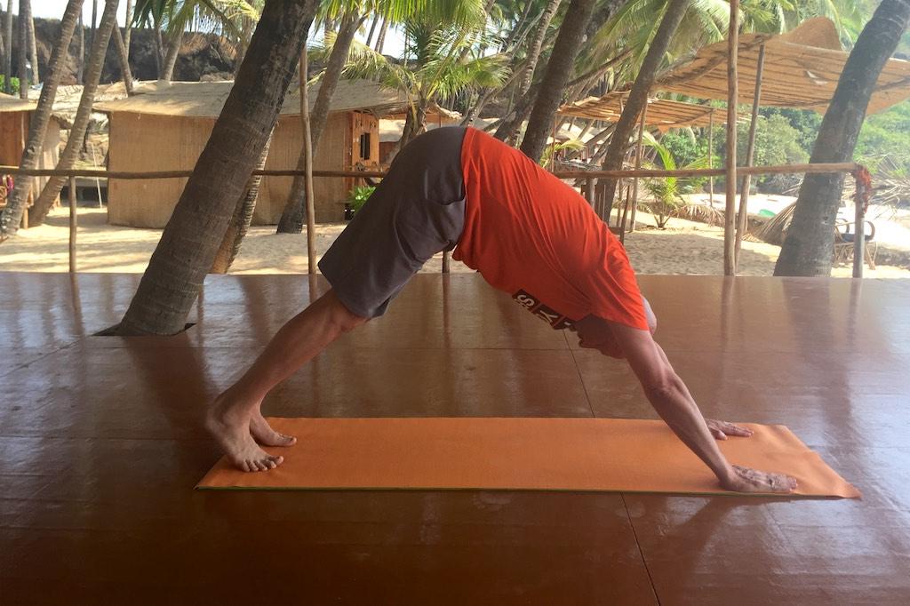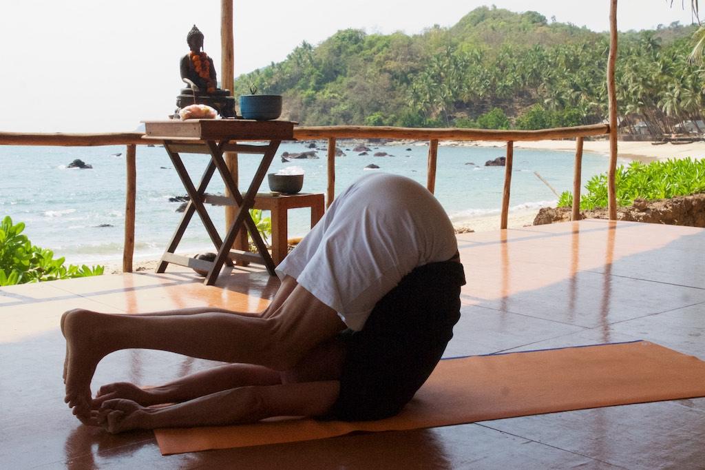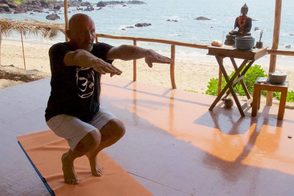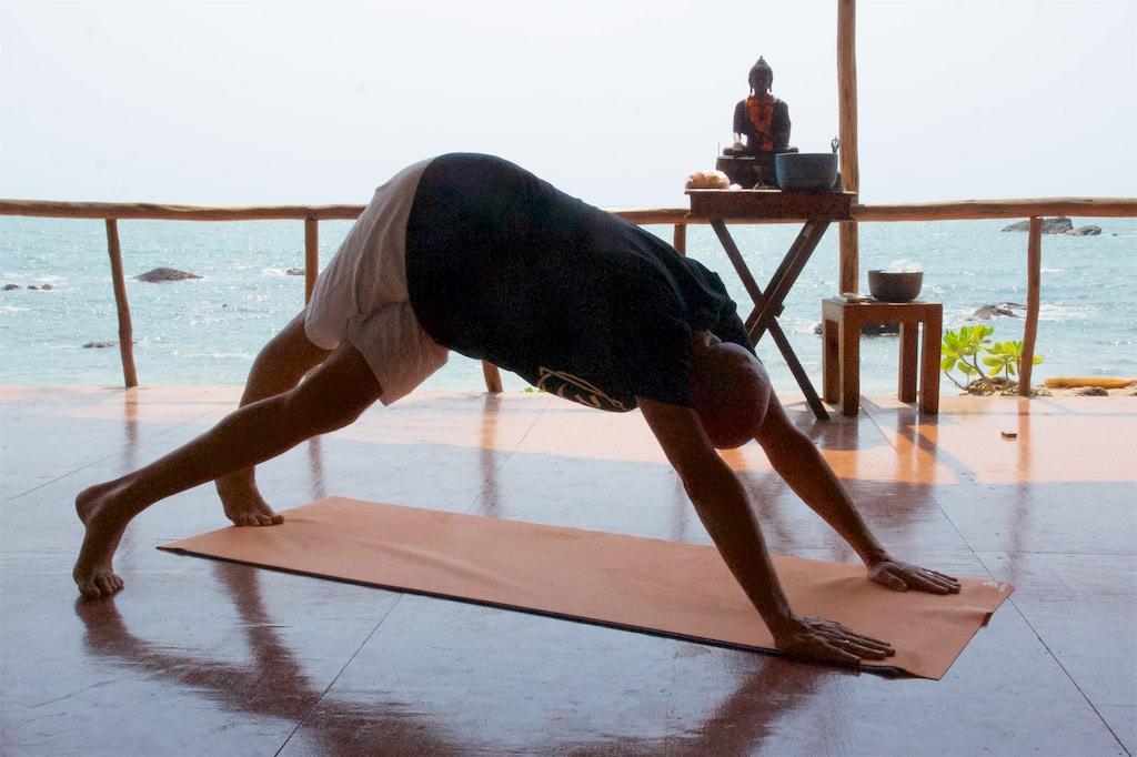 After the afternoon session a wonderful dinner was served in the newly built restaurant. I had always loved Sunil’s dishes but clearly the new kitchen offered him a lot more possibilities and that was reflected in the food.It is amazing how fast time flew by although not a lot was going on. It seemed to me the daily routine was like a meditation by itself. Every morning the alarm went off at 6:45 after which I had a quick wash and dressed up in my yoga gear. Relaxing at the veranda of my bungalow a ginger lemon tea was served by Vijay and whilst zipping from it I soaked up the breathtaking views and listened to the sound of the crashing waves on the shoreline. Not much later the bell rang, the sign the classes were about to start. As it was far more busy than last year there were two classes. Pardeshi was leading the advanced class, at a high pace and less explanations, whilst Ravi led a more mellow paced class with more explanations for the beginning yogi. I decided to do the advanced class and due time I noticed I was getting a bit more flexible and was even able to get into the more complicated asanas (poses). It made me feel pleased and happy but then, whilst watching some of the extreme Asanas that Pardeshi seemed to do completely effortless, I landed with both feet back solidly on the ground.