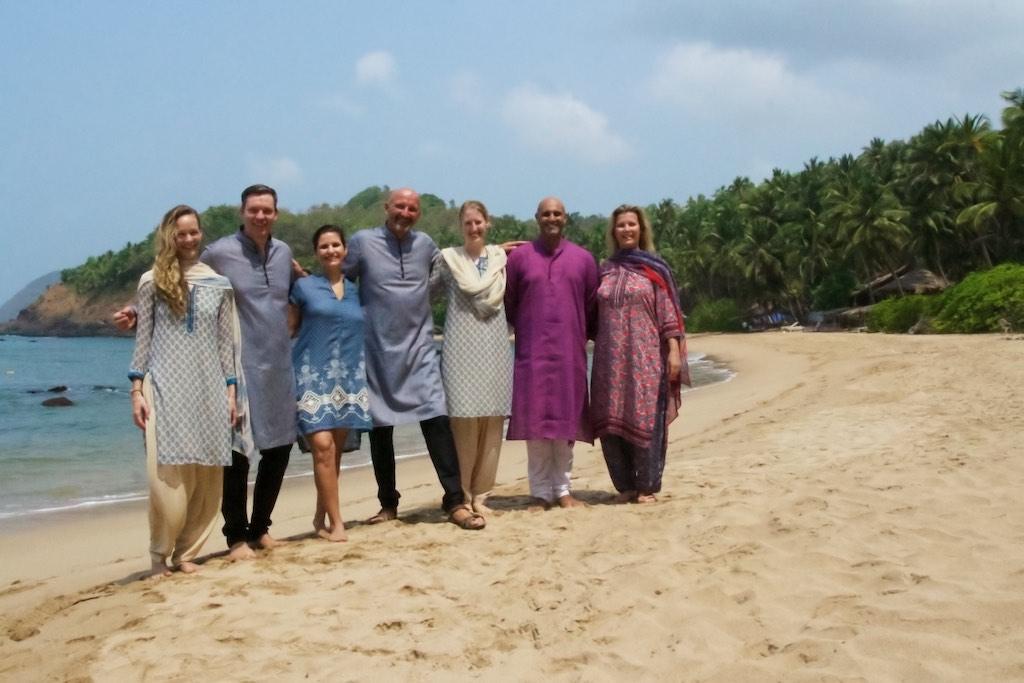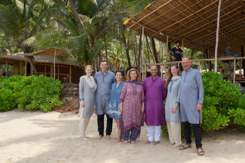 Still speechless we arrived at Little Cove and not much later our yoga class started. In honor of Pardeshi the 8 of us choose to wear our new outfit that night at dinner. He showed up later that evening with some of his family who also stayed at the resort. The morning after we could still see some of them wandering around and enjoying the beach and the spectacular setting. After yoga we did an official foto shoot to show off our new outfit.