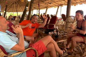 With my India trip just having passed the halfway mark I decided to go for a walk to the blue lagoon, two beaches further on. Once there I could not resist a couple of old monk rum with coke and neither could some other guests from Little Cove who escaped the dry zone… It was a lovely afternoon. Will now stick to my yoga regime again till the end of my trip 🙂