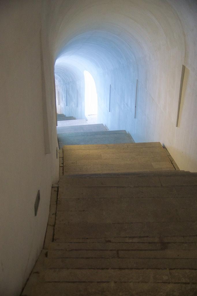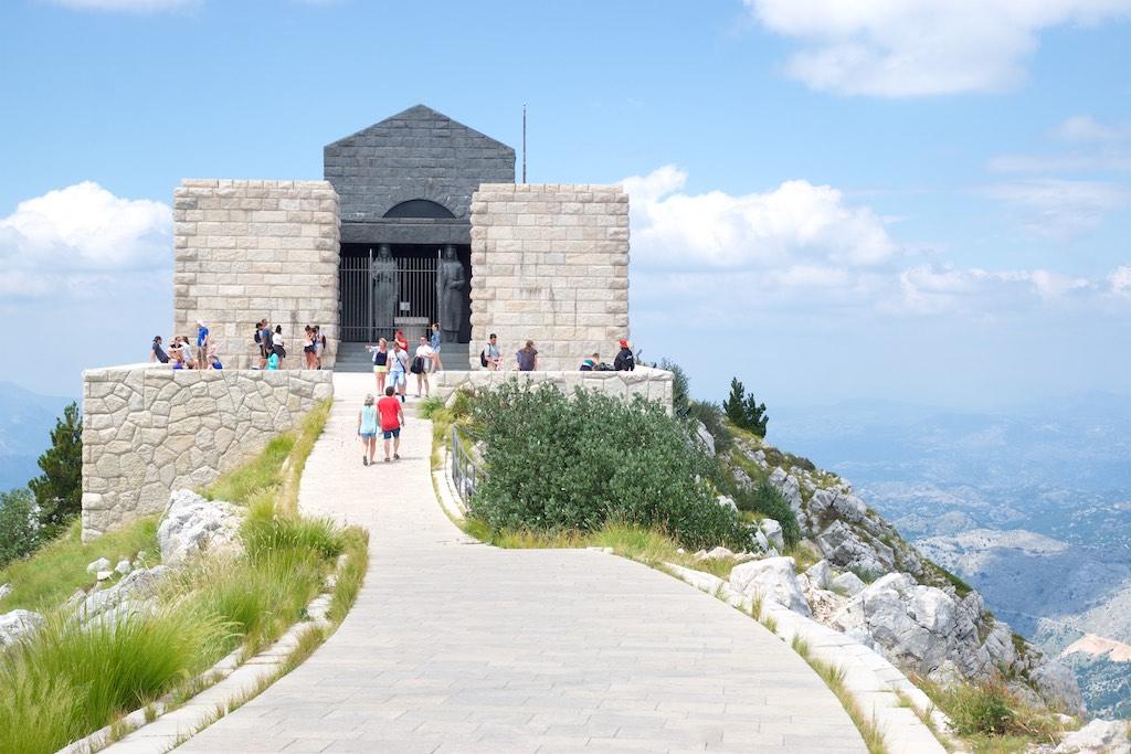 We started to climb again and now could see the mausoleum high on a mountain top. Once again we were lucky and found a parking spot close to where the stairs were that was the final ascend to the mausoleum. To make things easier an 80 meter long tunnel was carved through the mountain and once we came out of that one we were blown away by the panorama around us. It was simply breathtaking! We could almost see all of Montenegro from here and only another mountain was blocking the views of the Adriatic coast.
