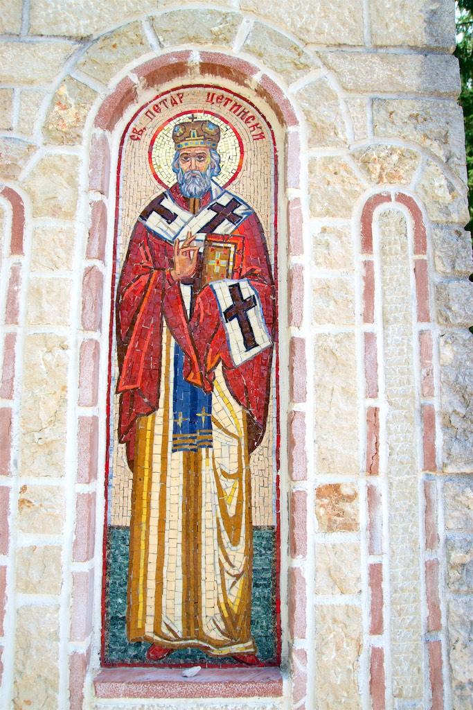 We did not need to use our imagination to see where Montenegro got it’s name as the major part was very mountainous. I decided to have a look at the mausoleum whilst Stephan remained behind to admire the scenery. Inside a large statue was placed in a room with a golden mosaic roof and through a narrow staircase I was led to another room that housed the actual grave.