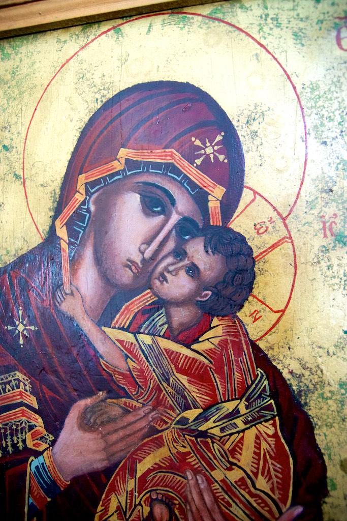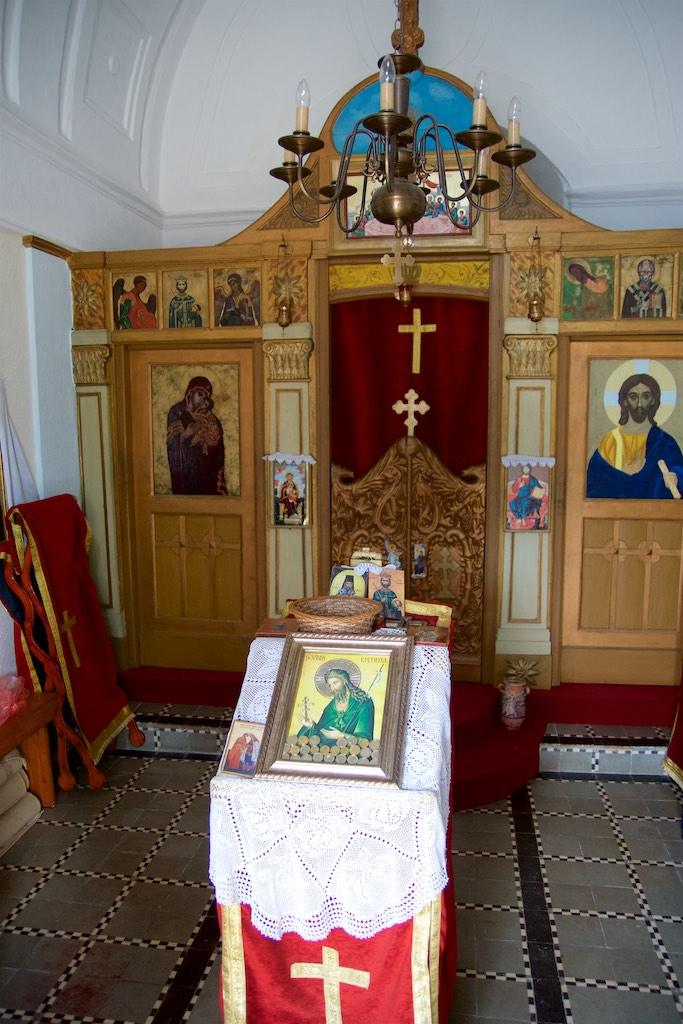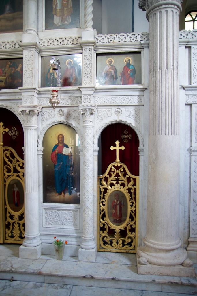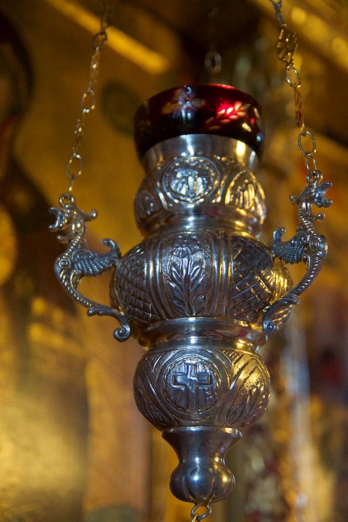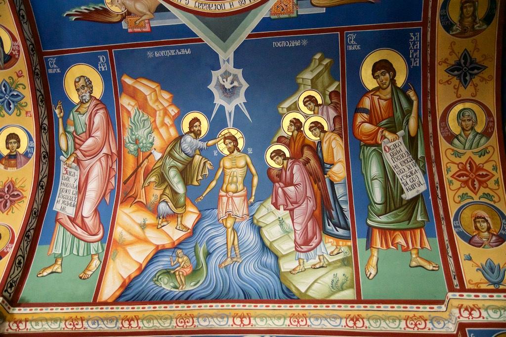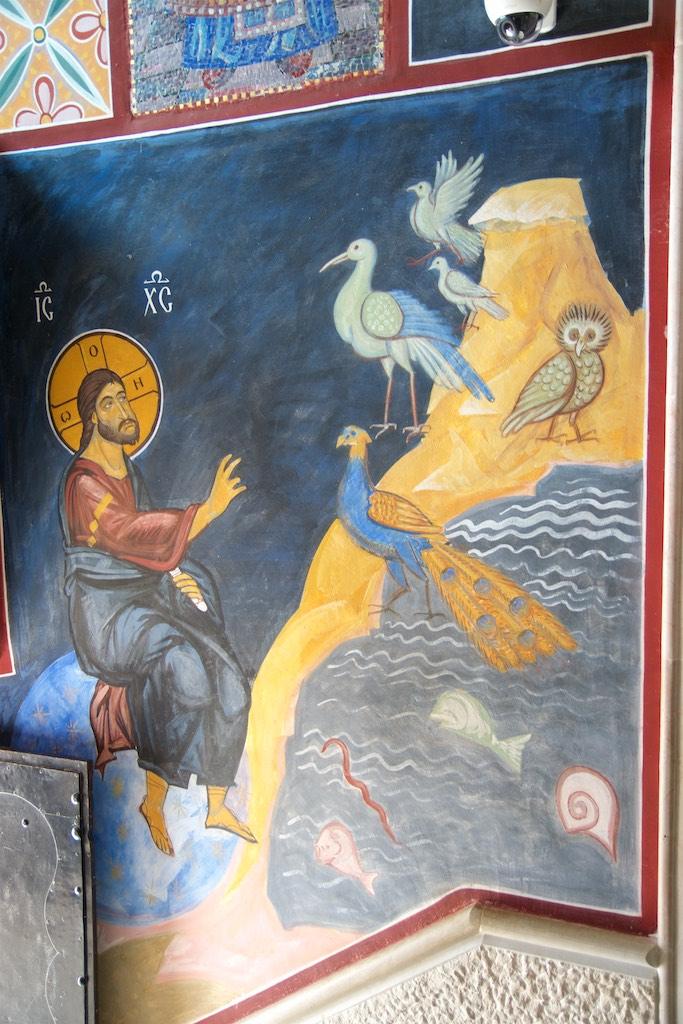 Finally we made it to the entrance and were guided into a small room, where the walls were covered with frescos. Only a couple of people were allowed in at a time into the small room and an orthodox priest was guarding an open coffin with what must have been the remainders of someone important. Although all of the pilgrims kissed the remainders I thought a respectful bow would be enough, which resulted in a disapproving look of the priest but I simply was not willing to extend my level of admiration to kissing a covered dead body.