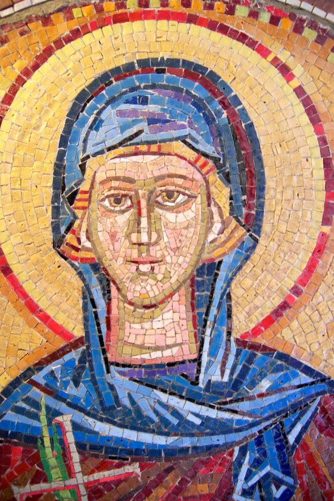 The wait for the ferry was not as long as the day before and five minutes later we found ourselves disembarked at the other shoreline. From there we moved on and followed the shoreline till our next stop, the Roman mosaics at Rivan.