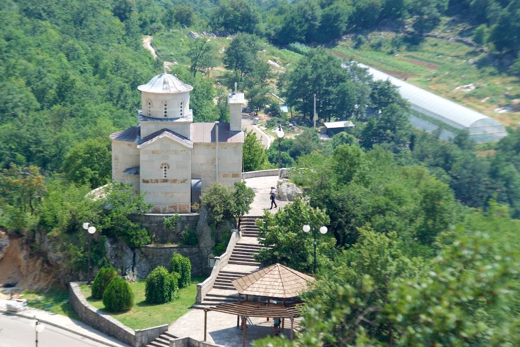 This time I did not see much as I fell asleep whilst Stephan was driving. I woke up when he parked the car at the parking area in front of Piva monastery. It did not look very impressive from the outside I must admit. In the seventies the monastery had been carefully broken down stone by stone and then rebuild 30 kilometers from it’s original location. It had to be moved as a dam was built further on they would drown the monastery. The whole process of breaking down and rebuilding took over 12 years.