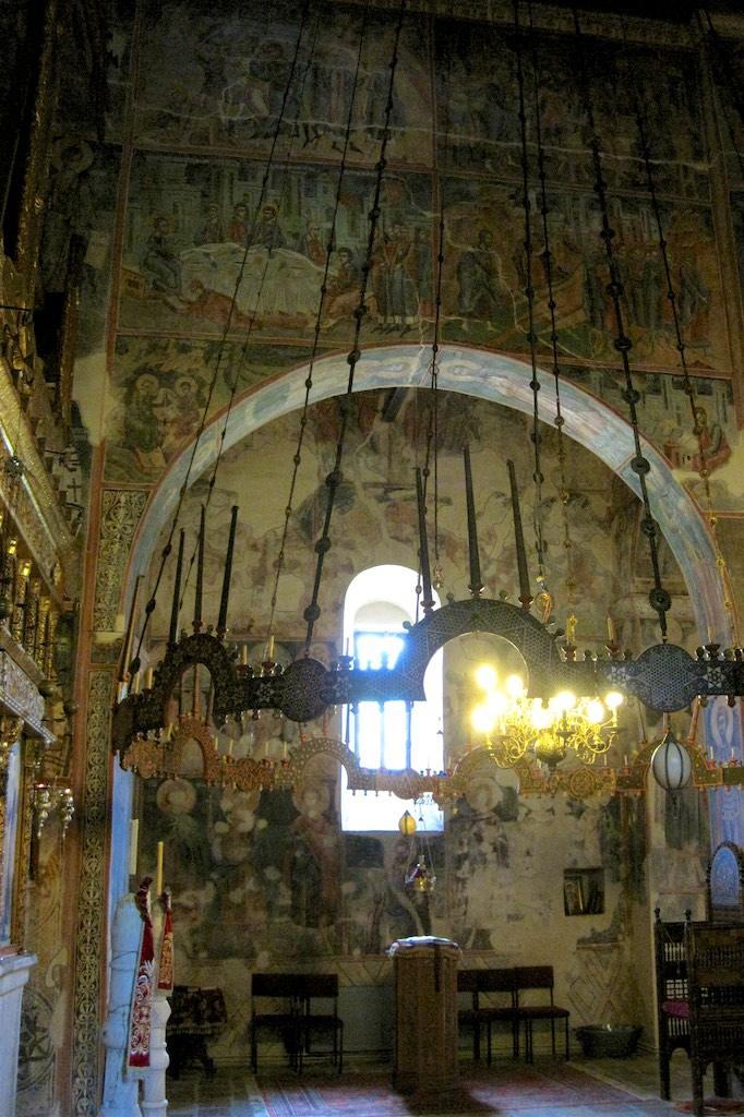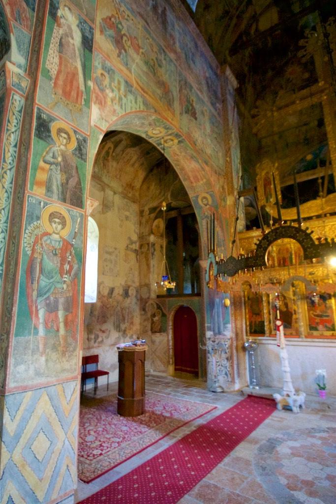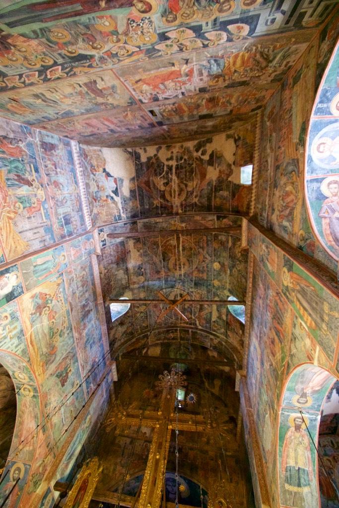 The unimpressive sight from the outside was a deception because as soon as we entered the interior we were blown away by the impressive fresco’s. There was not a single piece of wall not covered by them. The restoration work had been carefully done and one could hardly see a trace of it.