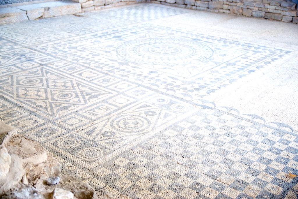 At the place where the mosaics were found an old villa was build at settlements that go back to the third century. Not much of the original building was left but fortunately we could still get a good view of the mosaics which were in prestine condition.