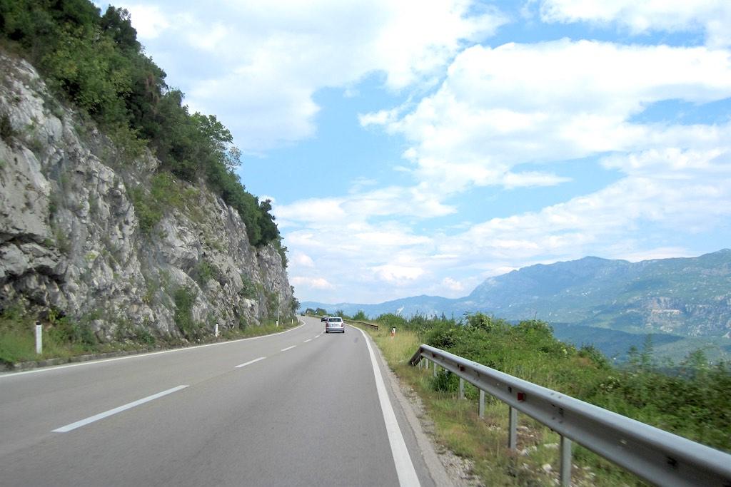 The road was not very wide in spite of being the main connection between Croatia and Montenegro. Not long after leaving the airport we arrived at the border which which we first noticed when we had to join a long queue. It took us ages to cross the border, well at least we thought we crossed it but not much later we had to join another queue which made us realize we had only passed the Croatian part.