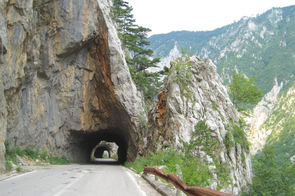 There were numerous tunnels carved into the mountain walls that we had to pass before we arrived at the dam which had initiated the move of the Piva monastery. On arrival it did not look impressive but once we drove over the dam we could see down the 200 meter deep gap where the Tara river was flowing.
