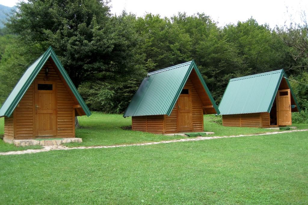 It was not far now to the border with Bosnia Herzegovina and after the formalities on both sides were cleared we finished the last two kilometers to our camp. There we checked in and were shown our cute little bungalow which would easily have fitted a dog or two…