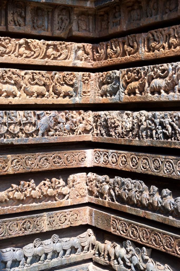 At first sight the temple at Halebid did not look like much, but that was only a deception. Even after having been in India for over two months my jaw dropped as I saw the exquisite carvings. They were so fine in detail and so well kept over the years I could hardly believe my eyes. The eye for detail, not a single piece seemed to be uncovered by some of the most beautiful carvings.